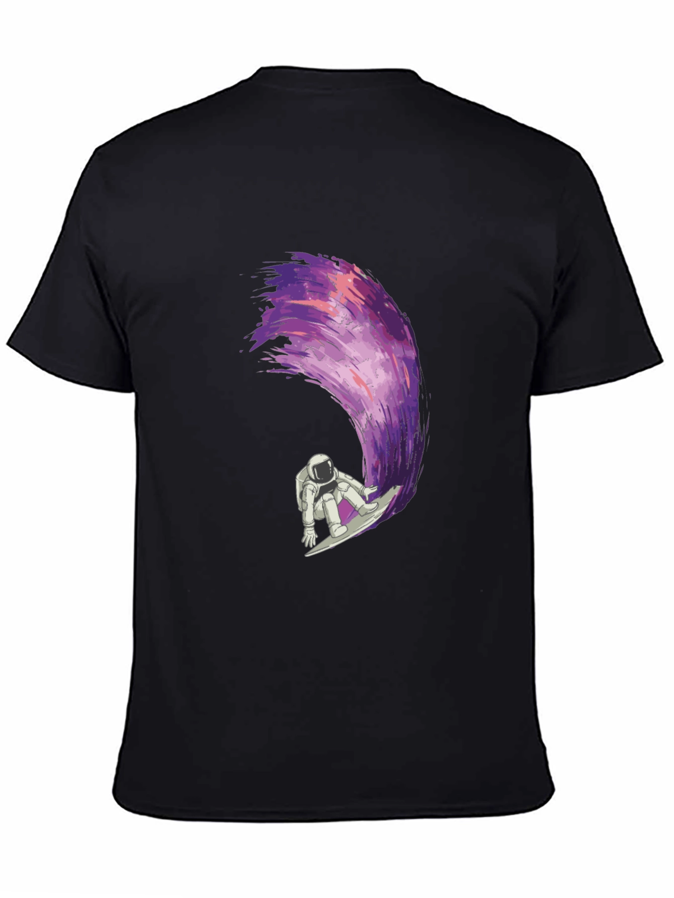 Ride the cosmic wave with this unique graphic t-shirt! Featuring an astronaut surfing a vibrant, purple and pink galaxy wave, this tee is sure to turn heads. The design is printed on a comfortable, black fabric that's perfect for everyday wear. Made from soft and breathable materials, it's ideal for casual outings, concerts, or just relaxing at home. Express your love for space and surfing with this eye-catching t-shirt. It's a must-have for anyone who loves unique and creative apparel. Makes a great gift for space enthusiasts and surfers alike!