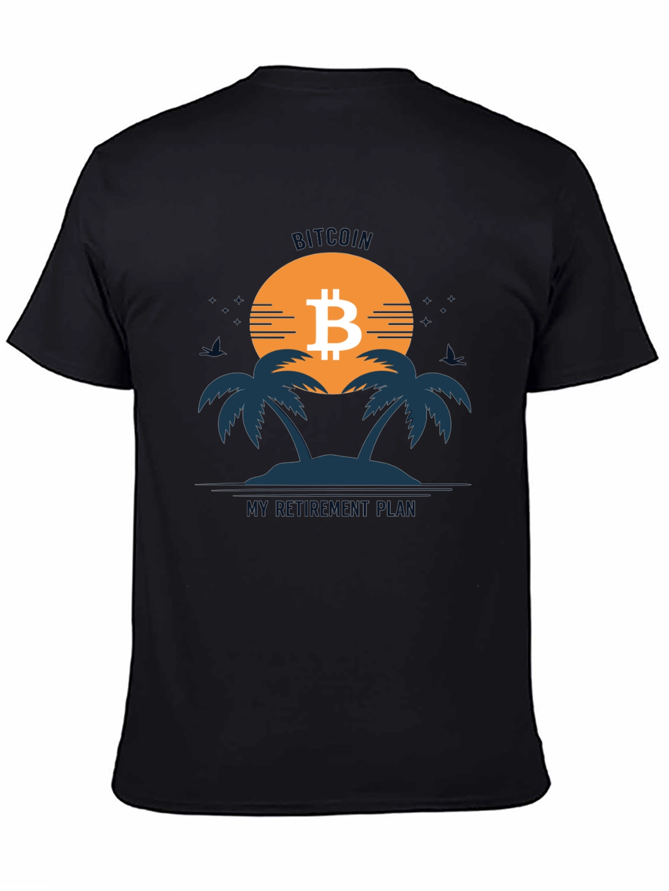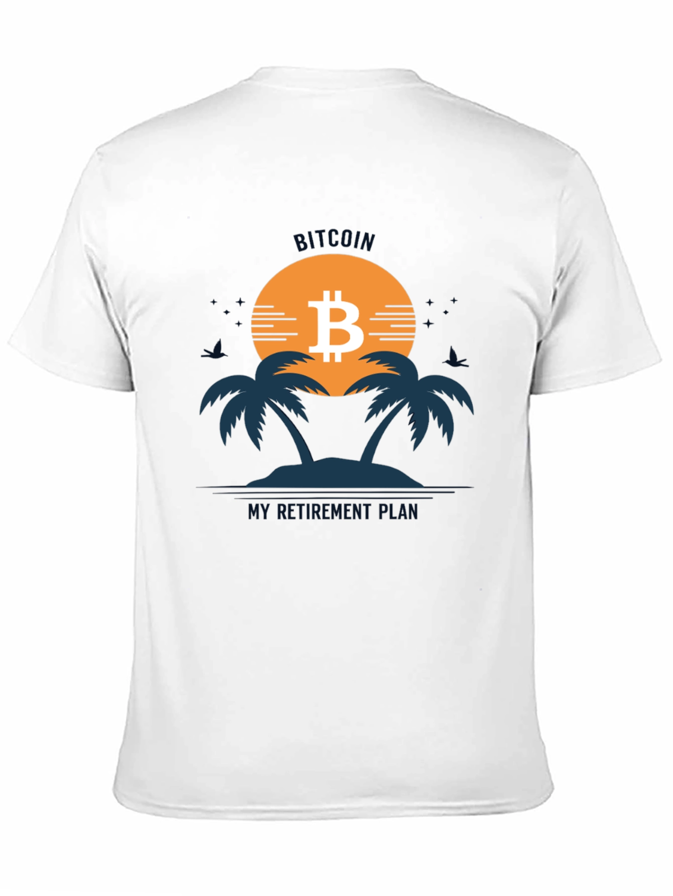 Embrace your financial future with this unique Bitcoin-themed t-shirt! Featuring a bold graphic of a tropical island sunset with the Bitcoin logo prominently displayed, this shirt playfully declares "Bitcoin: My Retirement Plan." The design is printed on a comfortable, breathable fabric, perfect for everyday wear. This eye-catching tee is ideal for Bitcoin enthusiasts, crypto investors, or anyone with a sense of humor about their financial goals. Show off your investment strategy and start conversations with this stylish and conversation-starting tee. Get yours today and let the world know you're banking on Bitcoin!