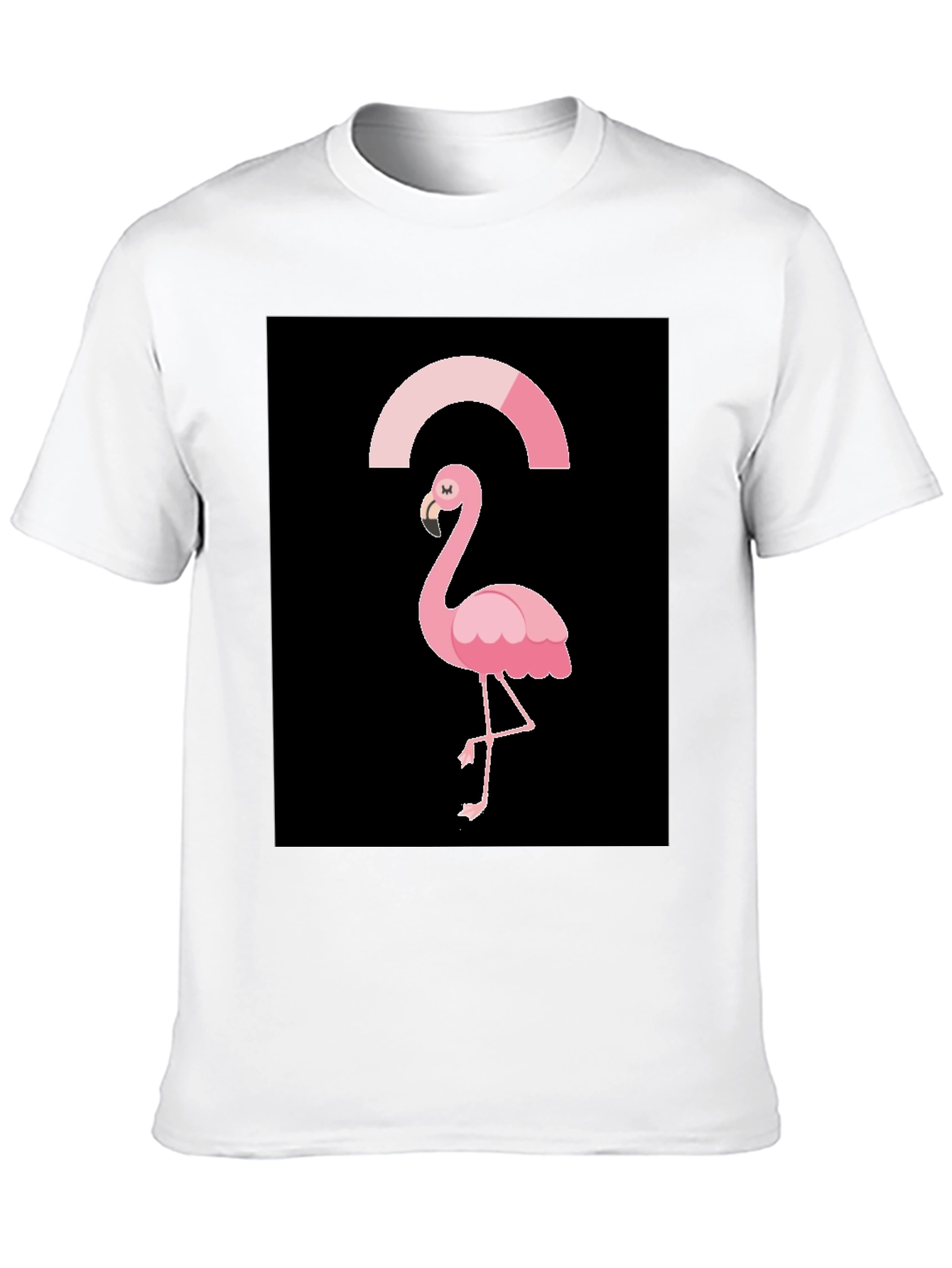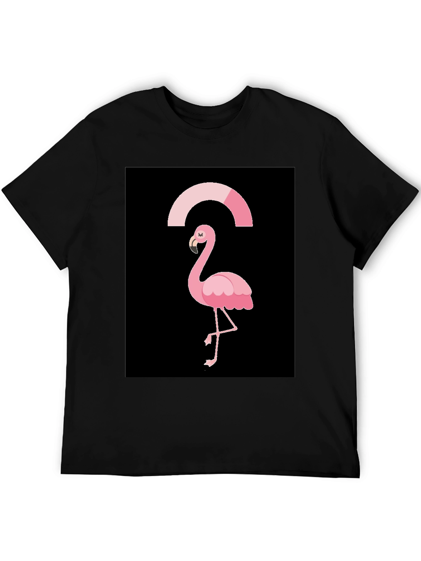 Show off your love for quirky style with this eye-catching black T-shirt. It features a playful pink flamingo graphic on the front, adding a pop of color and fun to your wardrobe. Made from a comfortable, breathable fabric, this tee is perfect for everyday wear. Its classic fit makes it a versatile addition to any casual outfit. Pair it with jeans, shorts, or a skirt for a laid-back yet stylish look. Whether you're lounging at home or heading out with friends, this flamingo tee is sure to turn heads and spark conversations. Get yours today!