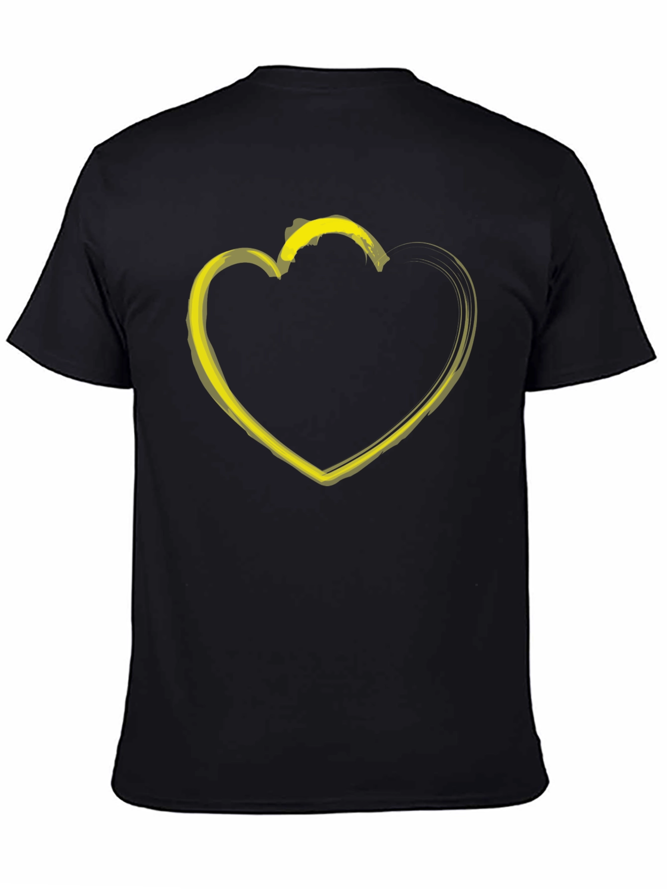 Show off your stylish side with this eye-catching black t-shirt. Featuring a vibrant yellow heart graphic, this tee is sure to make a statement. The classic crew neck and short sleeves offer a comfortable and versatile fit, perfect for everyday wear. Crafted from a soft, breathable fabric, this t-shirt provides all-day comfort. Dress it up with jeans and sneakers for a casual-cool look, or layer it under a jacket for added warmth. This shirt is a must-have addition to any fashion-forward wardrobe. Express your unique style with this trendy and comfortable tee!