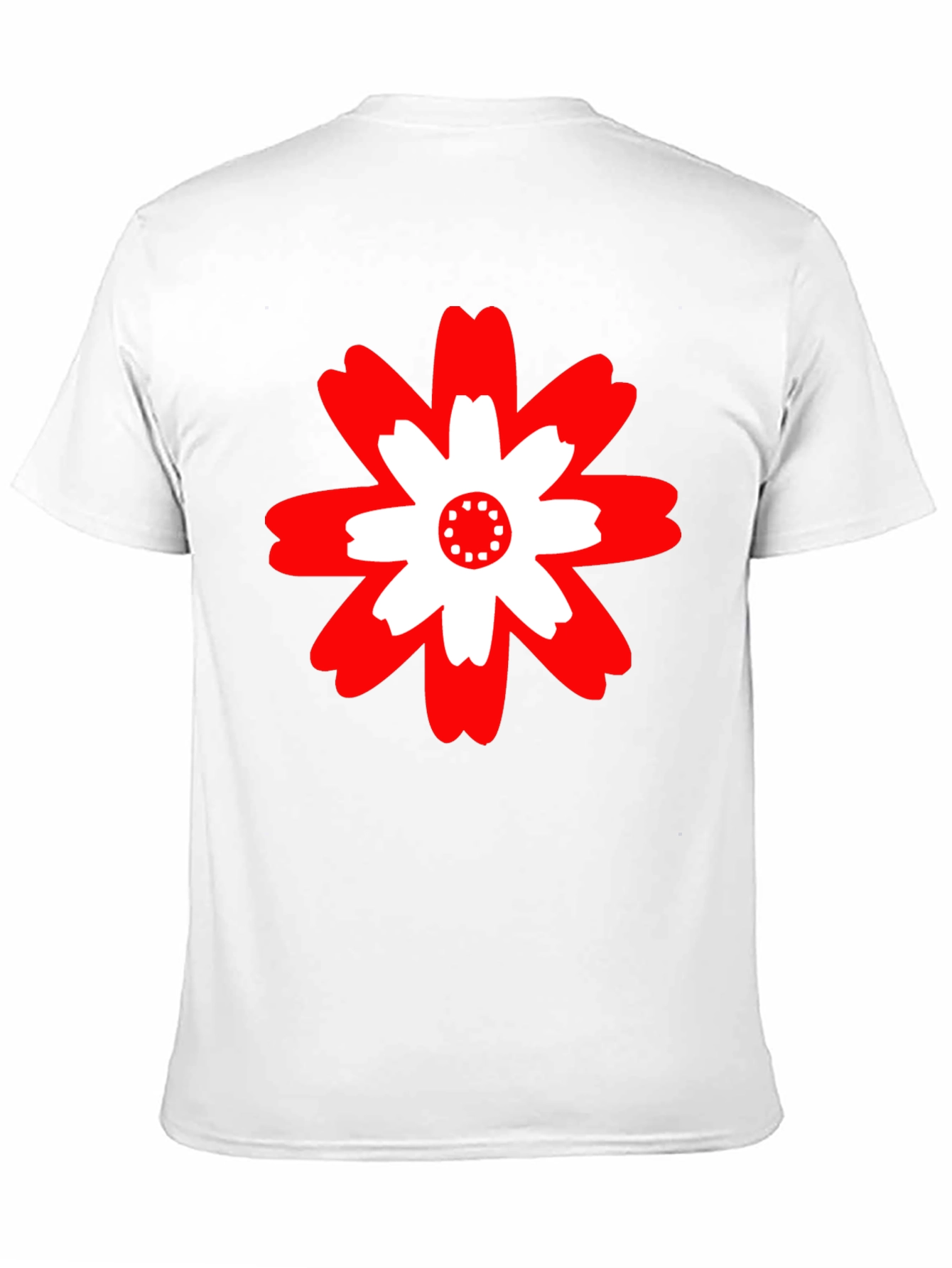 Elevate your casual wardrobe with this striking black t-shirt featuring a bold, stylized flower graphic. The eye-catching design showcases a red and white blossom, offering a modern and vibrant aesthetic. Crafted from a comfortable-looking fabric, this tee is perfect for everyday wear. Its classic fit makes it versatile for various occasions, from relaxed weekends to casual outings. Pair it with jeans or shorts for an effortlessly cool look. Make a statement and showcase your unique style with this standout floral graphic tee.