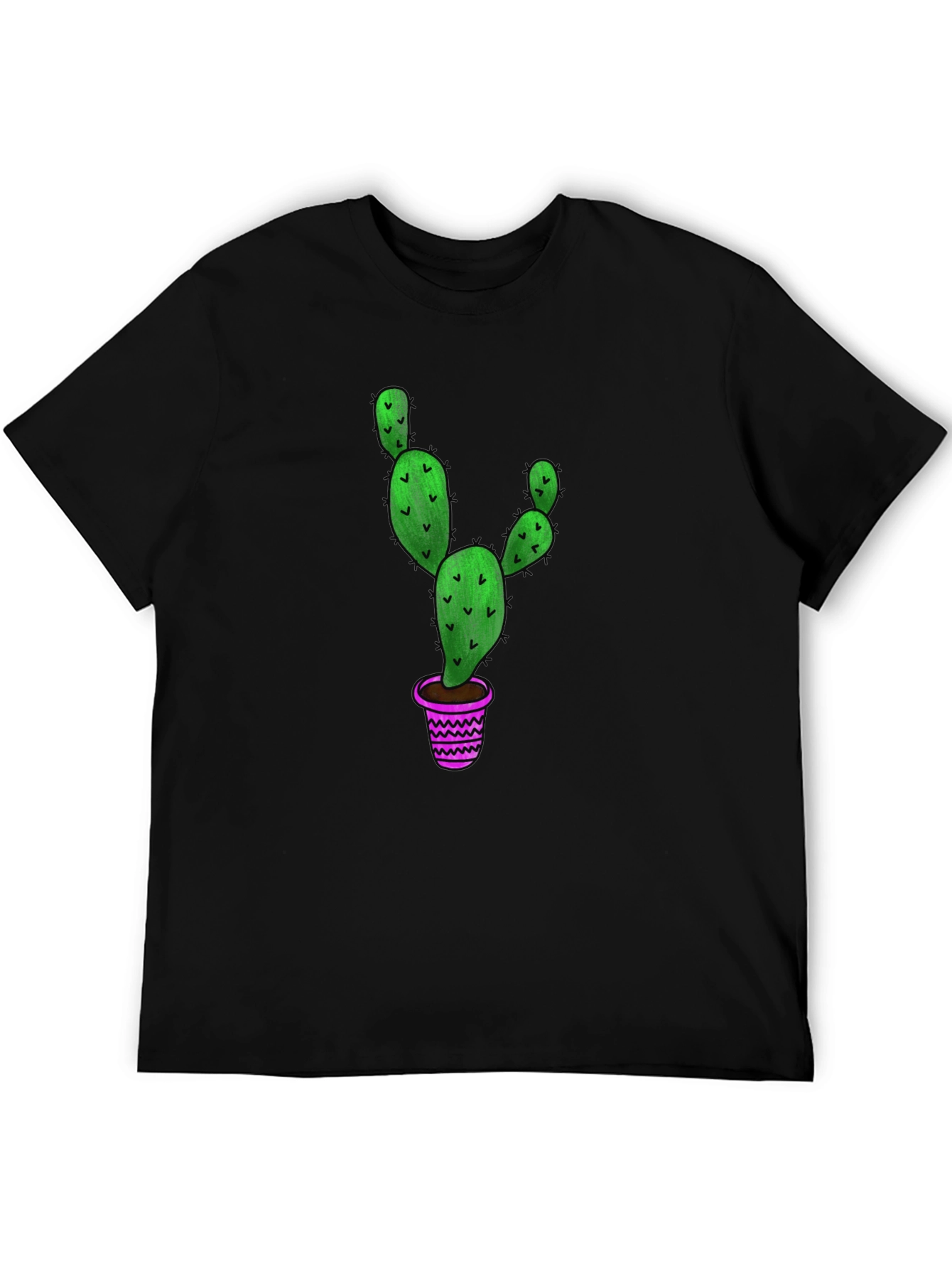 Show off your love for the desert with this unique graphic tee! This black t-shirt features a vibrant illustration of a cactus in a decorative pink pot. Made from a comfortable cotton blend, this shirt is perfect for everyday wear. The eye-catching design adds a touch of personality to any outfit. Style it with jeans for a casual look, or dress it up with a blazer for a more polished ensemble. Whether you're a plant lover or simply appreciate cool graphics, this tee is sure to become a favorite in your wardrobe. Available in a range of sizes.