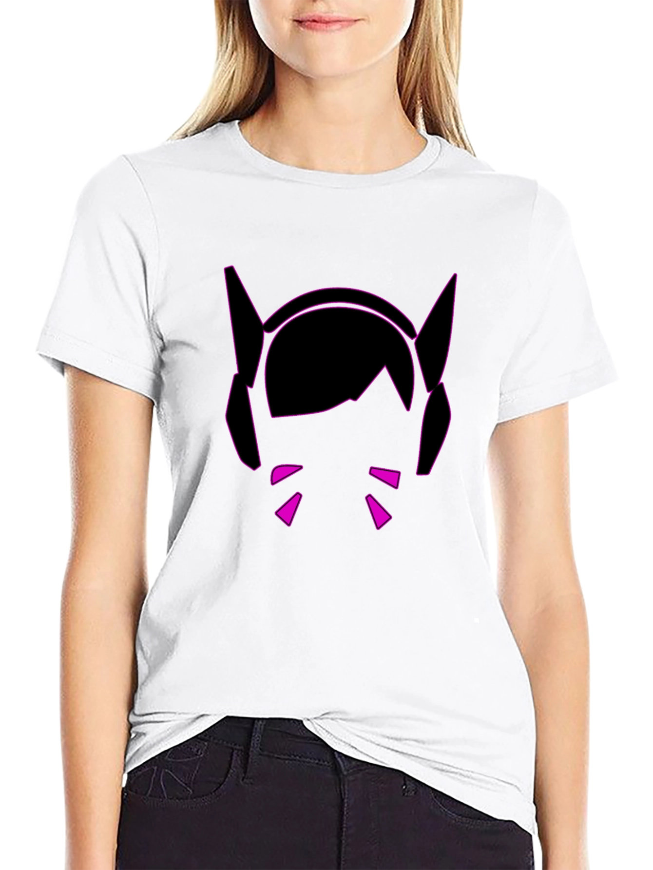 Show off your love for the popular video game Overwatch with this stylish black t-shirt. The shirt features a bold, minimalist design of D.Va's iconic headset and facial markings, rendered in vibrant purple outline. The design creates a striking contrast against the dark background. Made from what appears to be a comfortable, soft fabric, this tee is perfect for casual wear, gaming sessions, or conventions. A must-have for any Overwatch fan looking to display their favorite hero.
