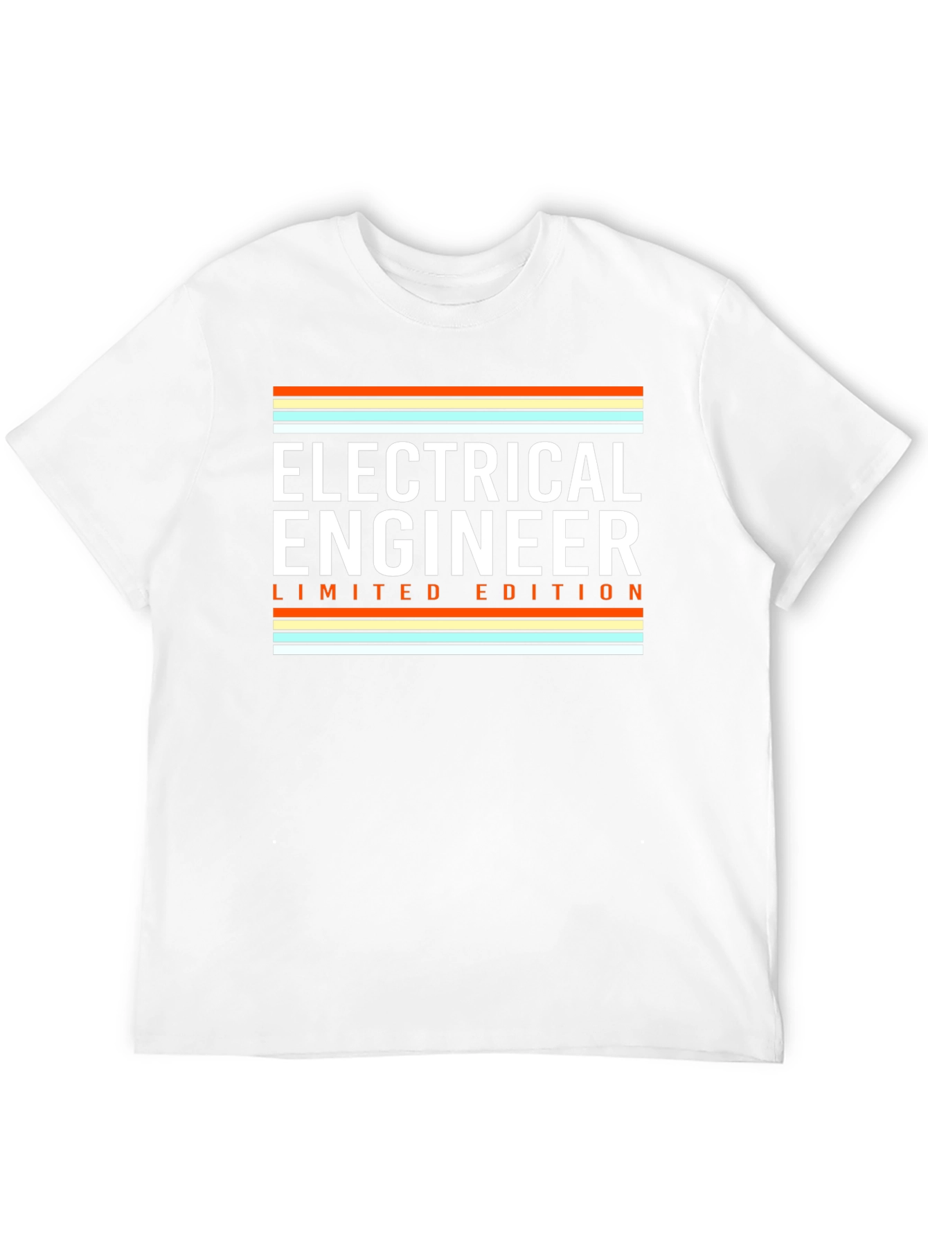 Showcase your electrical engineering pride with this stylish black t-shirt! Featuring a retro-inspired design with horizontal stripes of orange, white, and turquoise, this tee boldly displays "ELECTRICAL ENGINEER" in a crisp, white font, complemented by "LIMITED EDITION" in orange. Perfect for casual wear, engineering events, or as a unique gift for the electrical engineer in your life. Comfortable and eye-catching, this t-shirt is a must-have addition to any engineer's wardrobe. Make a statement with this distinctive and memorable tee!