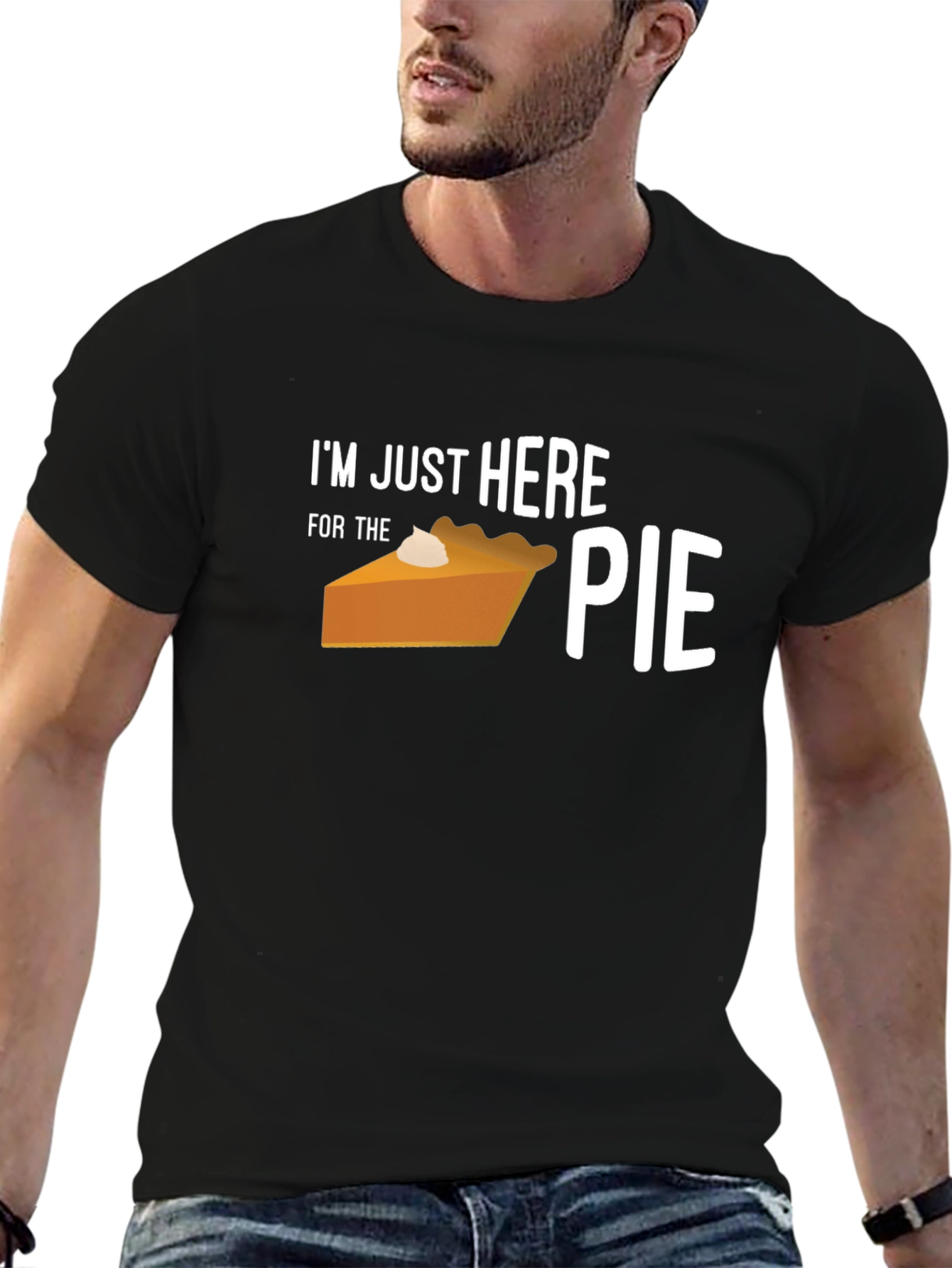 This novelty graphic t-shirt is perfect for Thanksgiving festivities! The black tee features a humorous print that reads "I'm Just Here for the Pie", with a slice of pumpkin pie illustration. Comfortable and casual, this shirt is ideal for family gatherings, holiday parties, or just showing off your love for delicious pie. Made from a soft, breathable fabric, it's sure to be a favorite during the holiday season and beyond. Show your festive spirit with this quirky, statement-making piece!