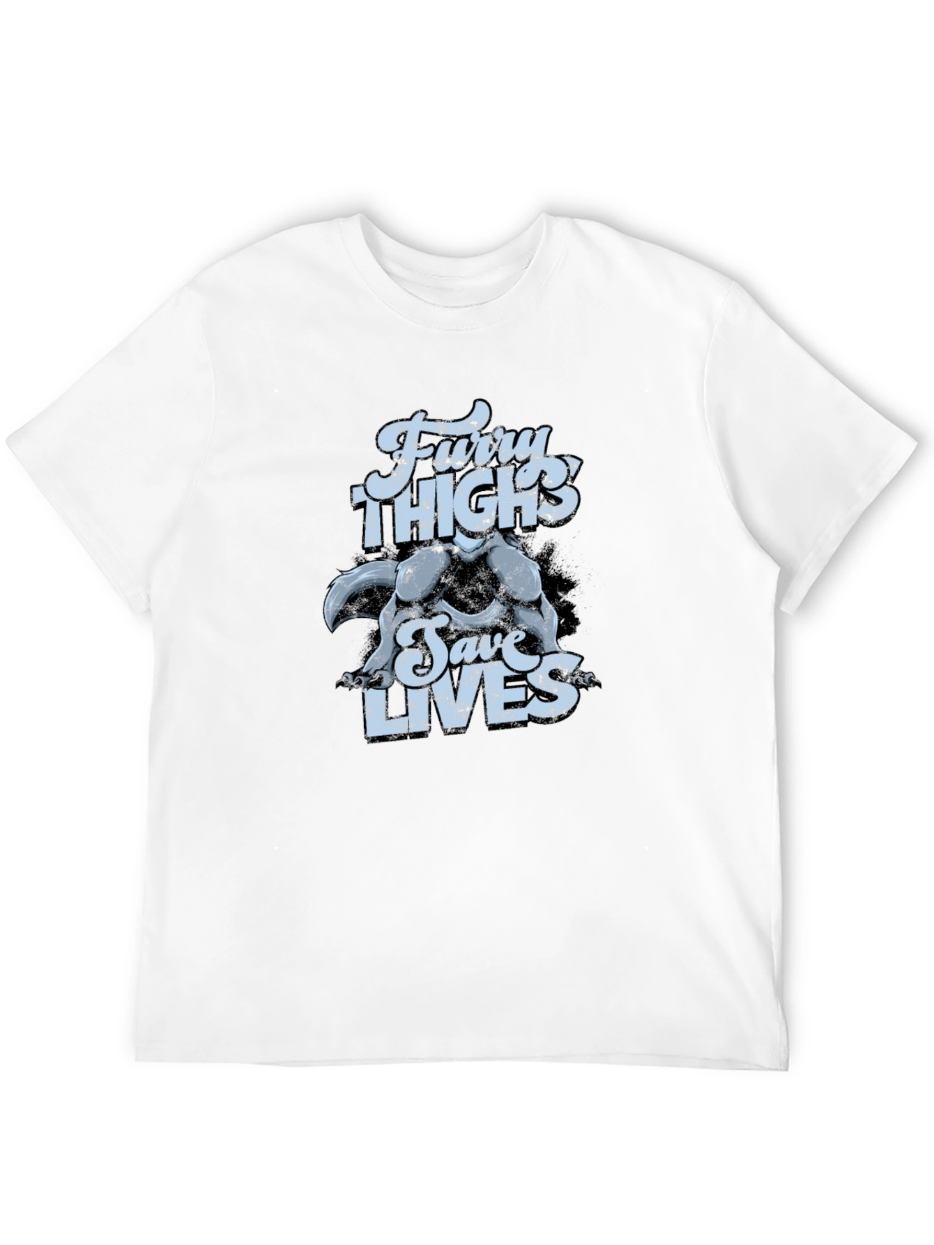 Show off your love of furry friends with this eye-catching graphic tee. The shirt features a playful design with the text "Furry Thighs Save Lives". The unique graphic will make you stand out from the crowd. Made from a comfortable, breathable fabric, this tee is perfect for everyday wear or as a fun statement piece at your next gathering. Pair it with jeans or shorts for a casual look. A great gift for yourself or any fan of unique apparel!