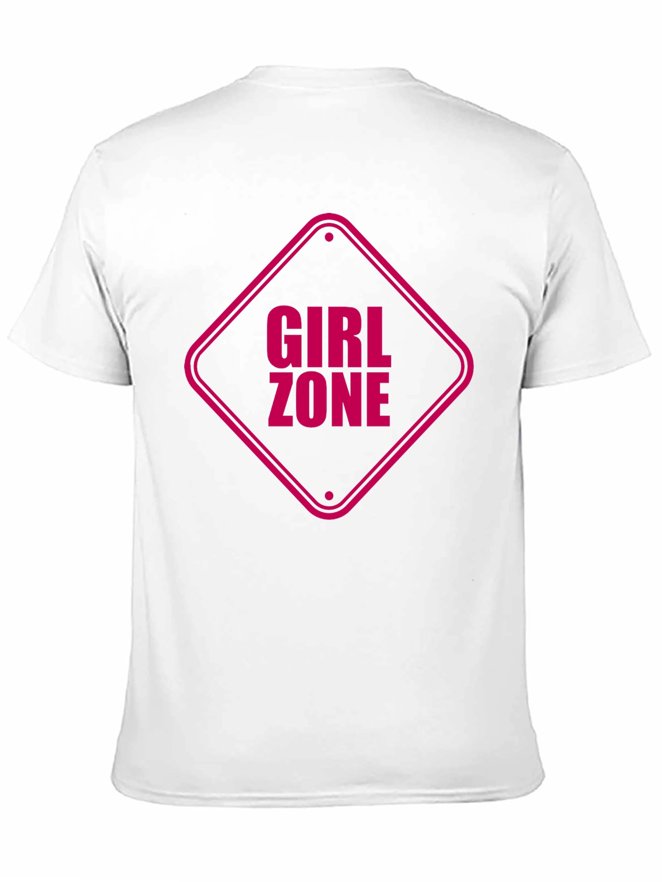 Show off your fun side with this bold black t-shirt featuring a vibrant pink "Girl Zone" graphic. The design is eye-catching, perfect for casual wear or making a statement. Made from a comfortable-looking cotton blend, this shirt is soft and breathable for all-day wear. The classic crew neck and short sleeves make it a versatile addition to any wardrobe. Ideal for expressing your personality or gifting to a friend who loves unique graphic tees. Grab yours today and represent the Girl Zone!