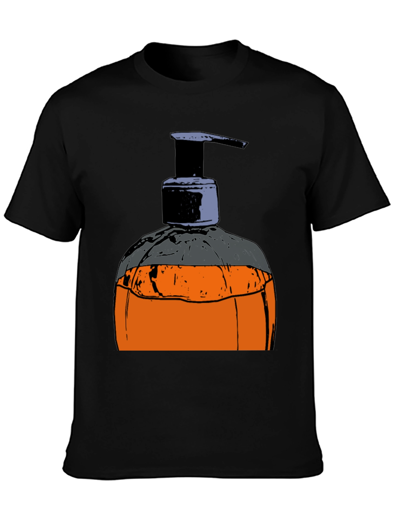 Show off your clean sense of humor with this unique graphic t-shirt! Featuring a bold, stylized illustration of a hand soap dispenser, this tee is sure to get a reaction. The design pops with bright orange liquid and cool gray dispenser details against a solid black background. Made from a comfortable fabric blend, this shirt offers both style and wearability. Perfect for casual outings, quirky events, or just lounging around, this t-shirt adds a splash of personality to any outfit. Get yours today and spread some clean fun!