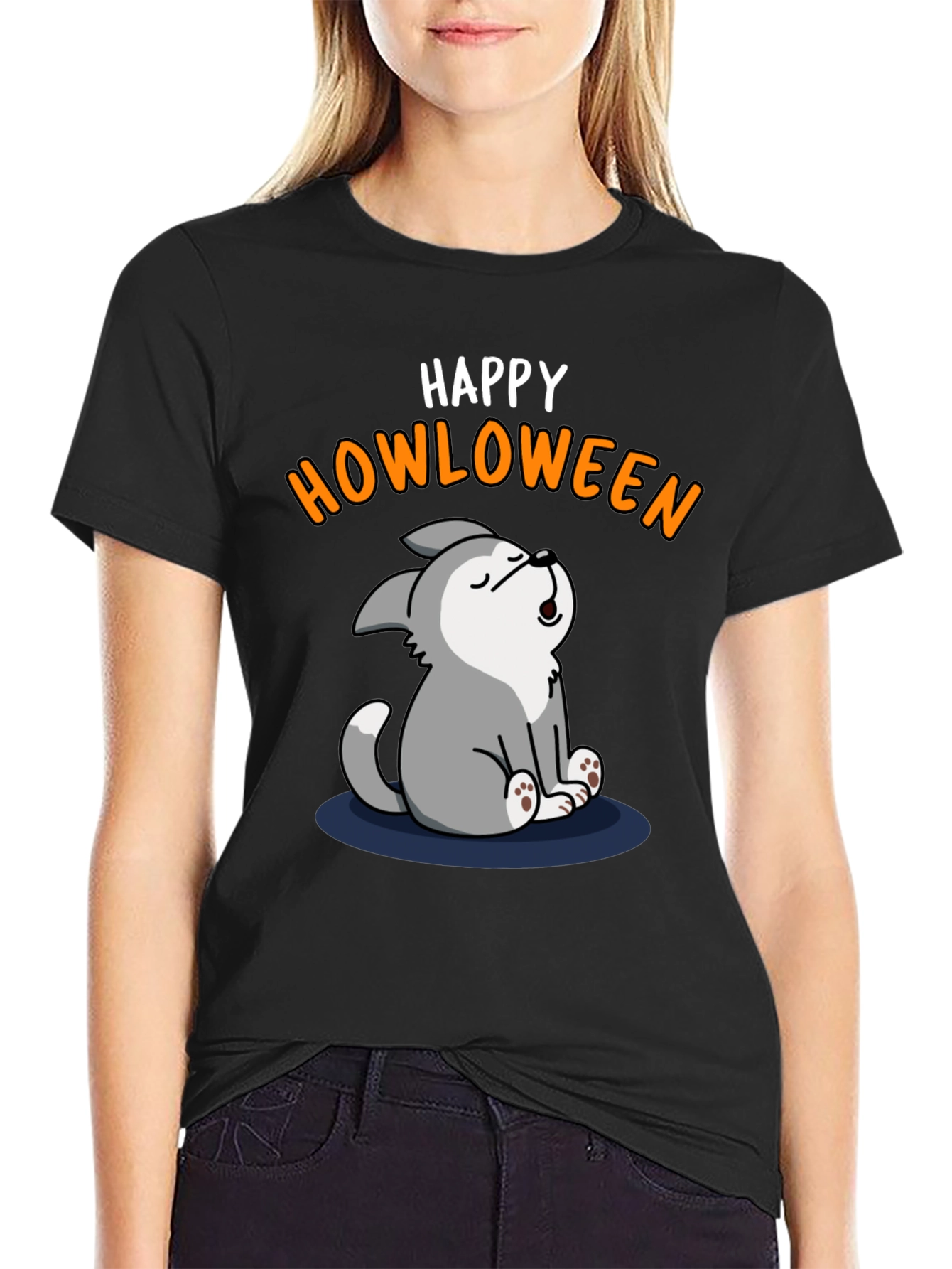 Happy Howloween T-Shirt - Cute Wolf Halloween Tee