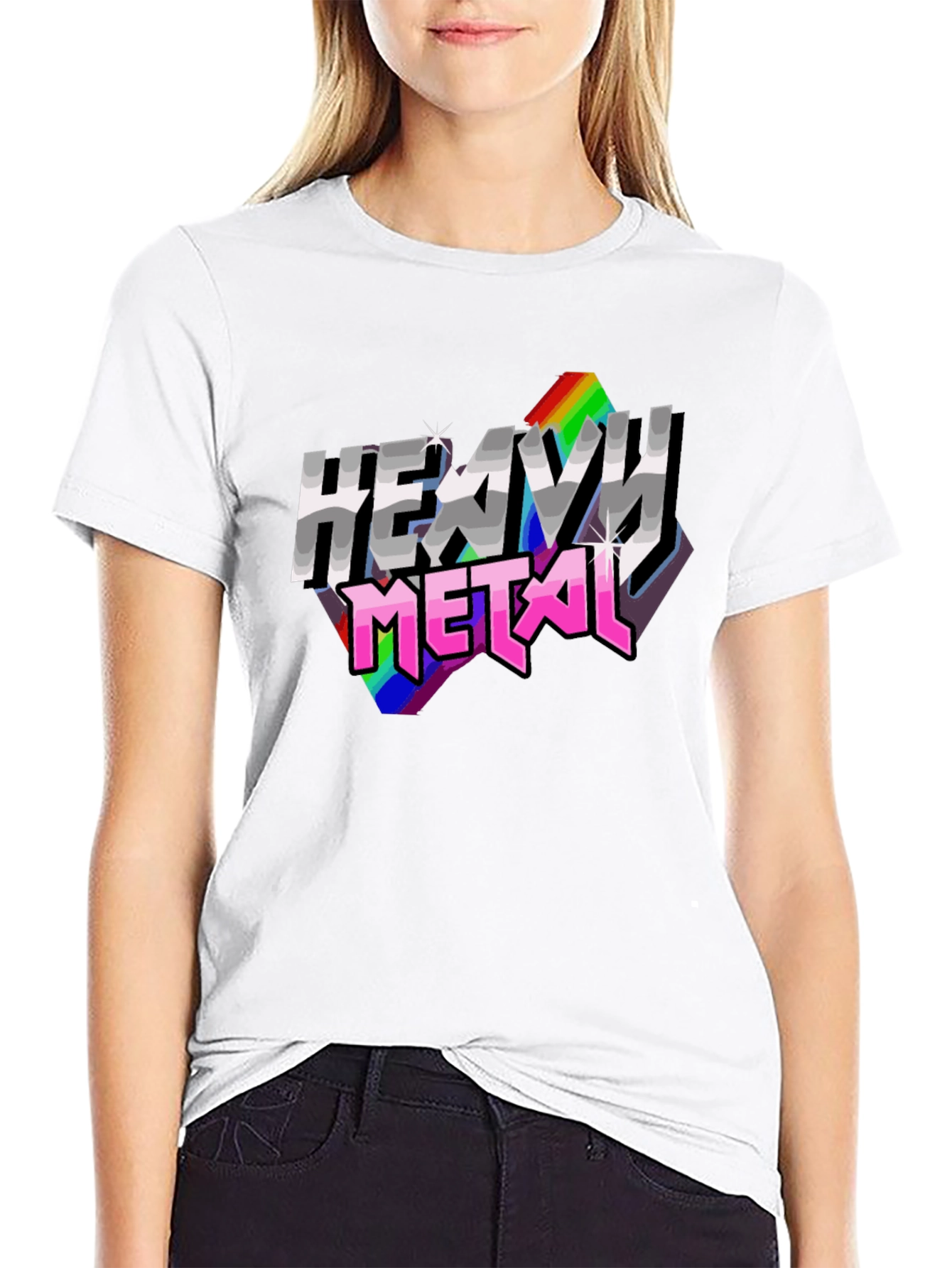 Rock your style with this eye-catching heavy metal t-shirt. Featuring a bold "Heavy Metal" graphic with a retro rainbow gradient, this shirt is sure to turn heads. Made from soft, breathable cotton, it offers all-day comfort. The classic fit makes it perfect for concerts, casual outings, or simply expressing your love for rock music. Pair it with jeans or shorts for an effortlessly cool look. Get ready to unleash your inner rockstar with this must-have tee!