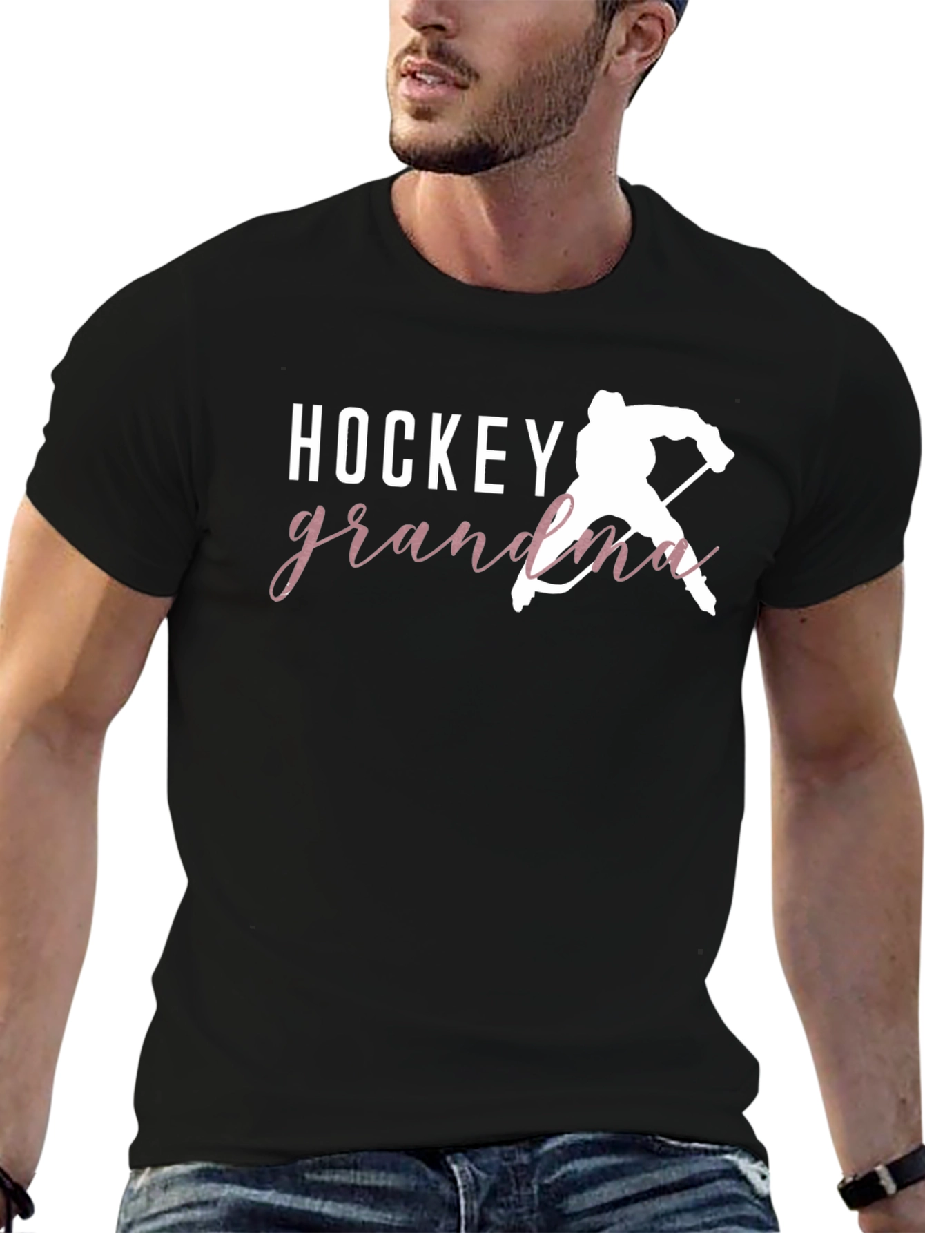 Show your support on the ice with this stylish Hockey Grandma t-shirt! Made from comfortable fabric, this black tee features a bold "HOCKEY" headline, followed by the cursive "grandma", along with a silhouette graphic of a hockey player. Perfect for wearing to games, practices, or simply showing off your hockey pride. Grab yours today and let everyone know who you're cheering for!