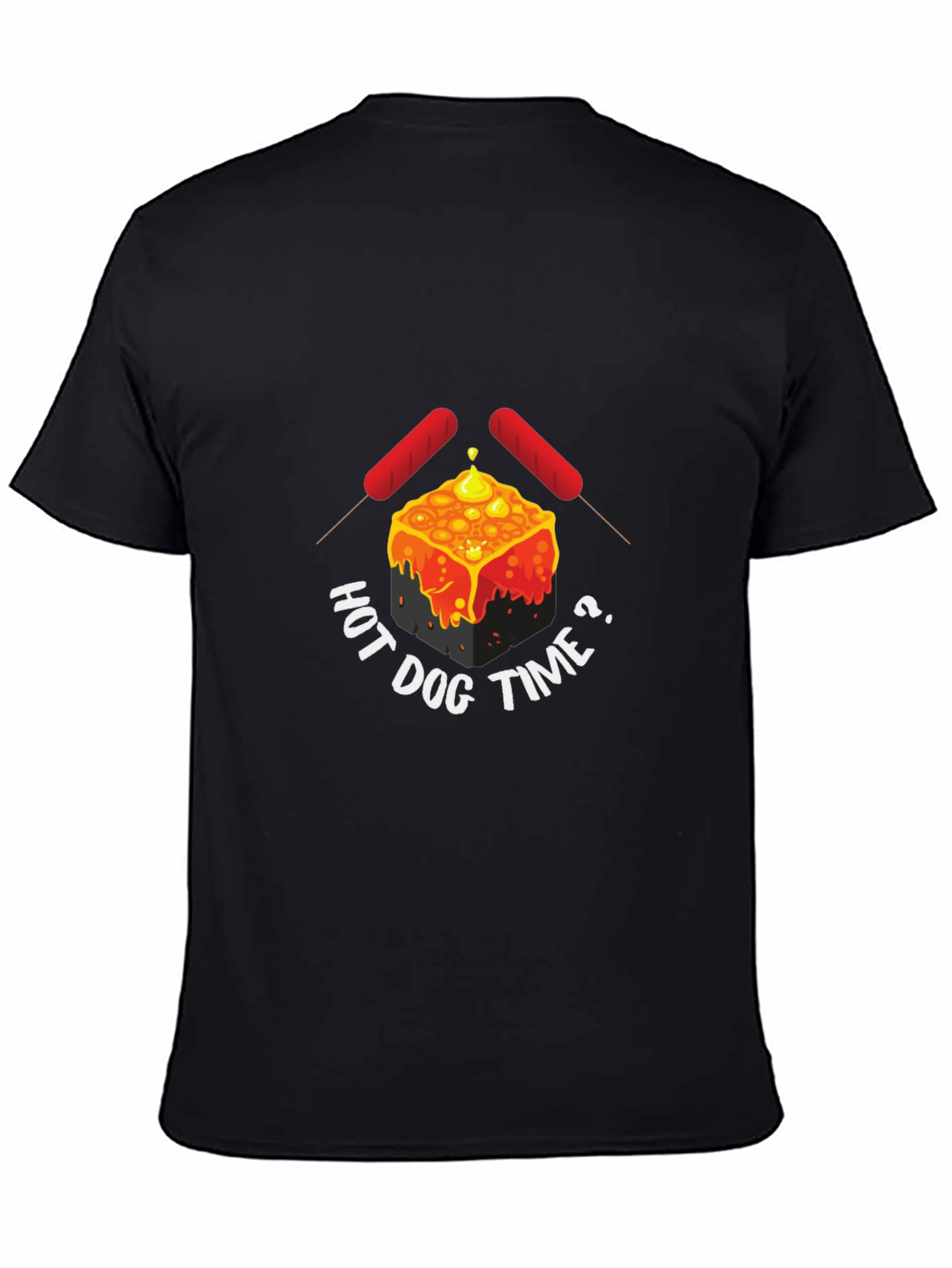 Show your love for hot dogs with this unique black graphic tee! The shirt features a playful design with a cube shape, skewers with hot dogs, and the words "HOT DOG TIME?" making it a fun conversation starter. Made from a soft, comfortable fabric, this tee is perfect for casual wear, cookouts, or anyone who appreciates a good laugh. Express your quirky style and let everyone know it's always hot dog time! A great gift for foodies and hot dog enthusiasts.