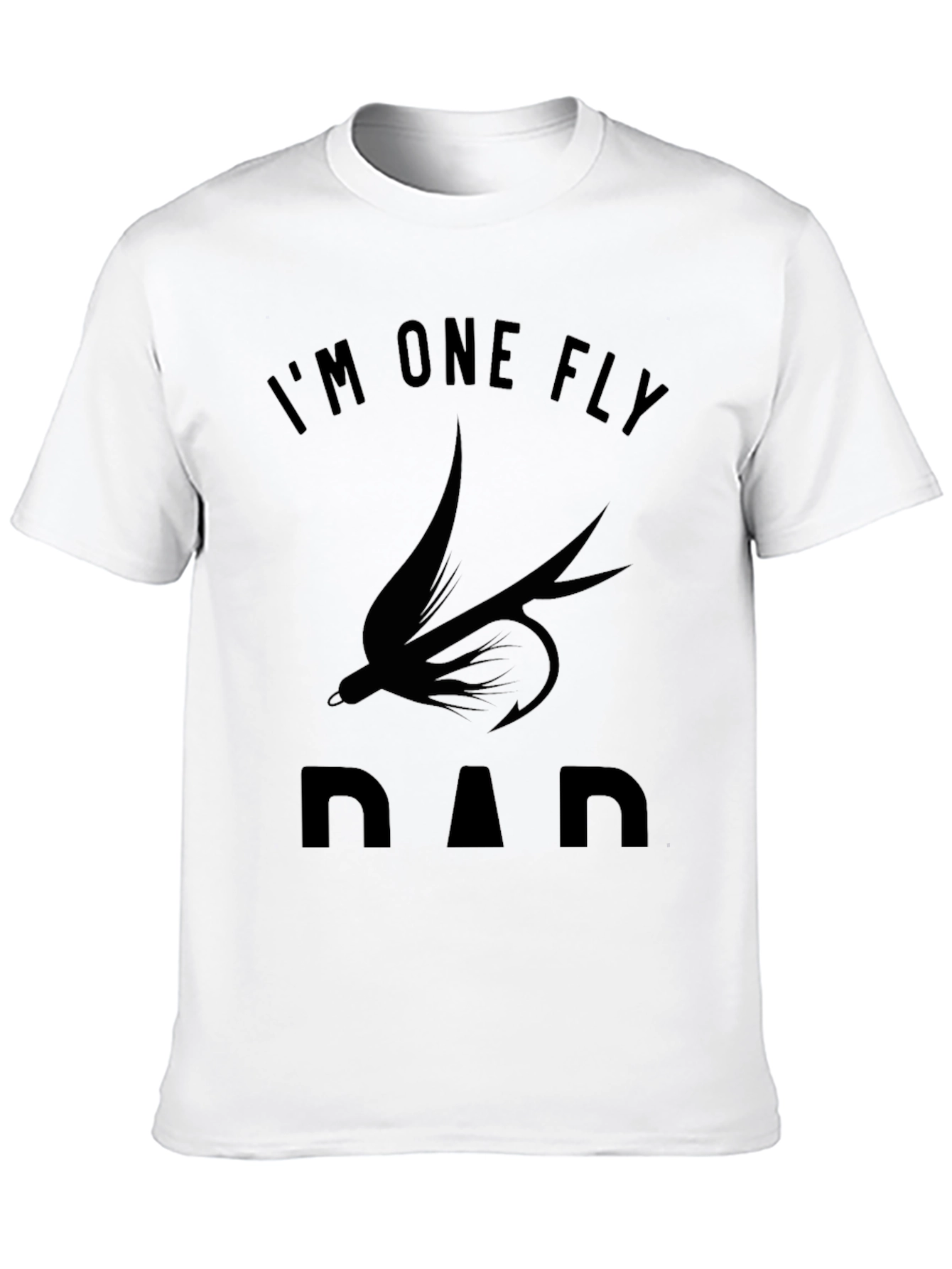 This stylish black t-shirt features a unique graphic design, making it a standout piece in any wardrobe. The shirt is made from a comfortable-looking cotton fabric, providing a soft and breathable feel. The design includes the phrase "I'M ONE FLY DAD" with a silhouette of a fishing fly, perfect for dads who love fishing or appreciate a clever pun. The classic fit and short sleeves make it versatile for casual wear. It's ideal for wearing to family gatherings, fishing trips, or just as a daily statement piece. Show off your dad pride with this comfortable and eye-catching tee. It’s sure to spark conversations and bring a smile to those who see it.