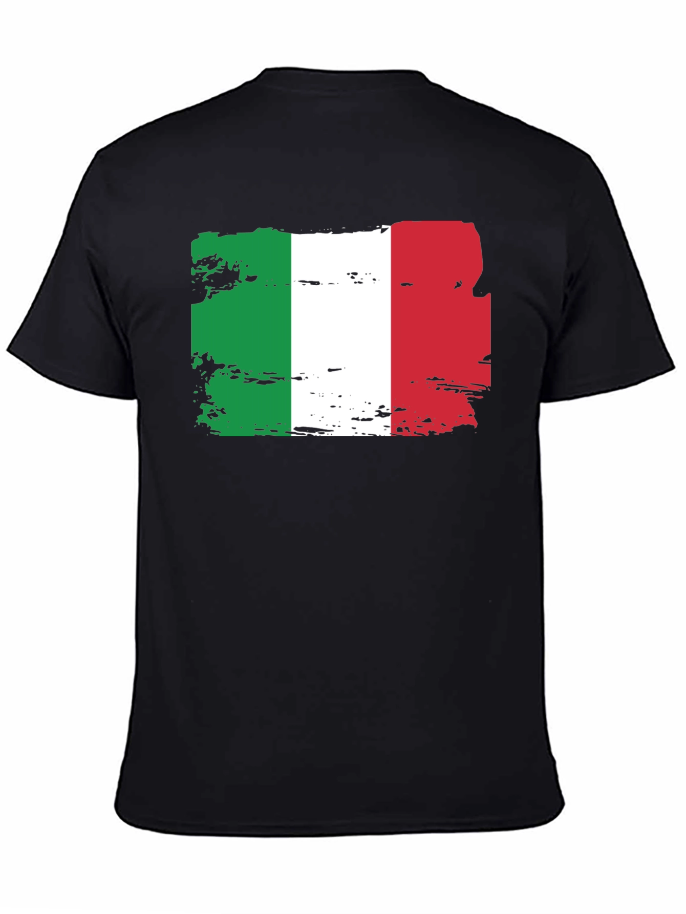 Show off your Italian pride with this stylish black t-shirt featuring a bold Italian flag graphic. The flag design is rendered in a distressed, artistic style, giving it a unique and eye-catching look. Made from comfortable material, this tee is perfect for casual wear, sporting events, or simply expressing your heritage. The classic black color makes it versatile and easy to pair with jeans, shorts, or your favorite bottoms. Make a statement and celebrate Italy with this must-have tee!