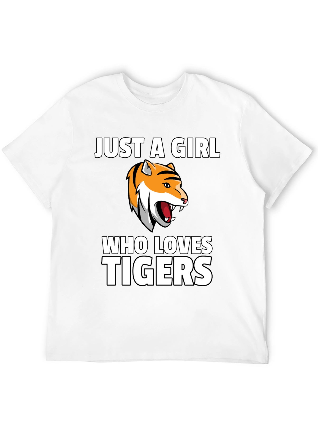 Show your love for tigers with this stylish and comfortable black t-shirt. The design features a bold graphic of a tiger head alongside the text "Just a Girl Who Loves Tigers." Made from soft, breathable fabric, this tee is perfect for everyday wear or casual outings. It's a great way to express your passion for these majestic animals and makes a thoughtful gift for tiger enthusiasts. Pair it with jeans, shorts, or a skirt for a versatile and trendy look. This t-shirt combines comfort, style, and a love for wildlife.
