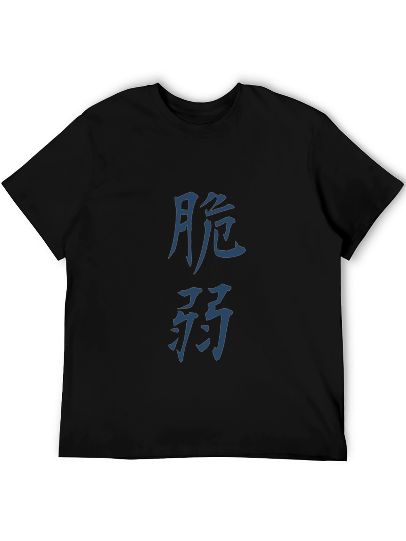Embrace unique style with this black T-shirt featuring bold, blue Japanese Kanji calligraphy. The striking graphic adds an artistic and culturally inspired touch to your wardrobe. Crafted from a comfortable fabric, this tee offers a soft feel and relaxed fit. Perfect for casual outings, artistic expression, or as a statement piece. Stand out from the crowd with this conversation-starting design that blends modern fashion with traditional artistry. Ideal for those who appreciate Asian culture or anyone seeking a distinctive and fashionable look.