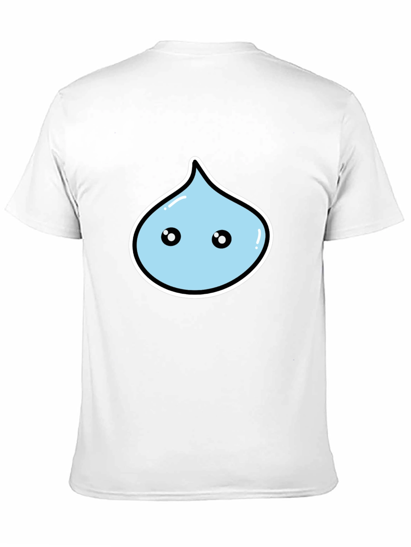 This stylish black t-shirt features a cute, kawaii-style droplet graphic on the front. The design is a light blue rounded shape with a pointed top, outlined in white, and has two endearing black eyes. Made from what appears to be a comfortable cotton blend, this tee is perfect for casual wear. The short sleeves and classic fit make it ideal for everyday use, whether you're running errands, hanging out with friends, or just relaxing at home. Show off your playful side with this unique and eye-catching t-shirt. It's a fun and expressive addition to any wardrobe.