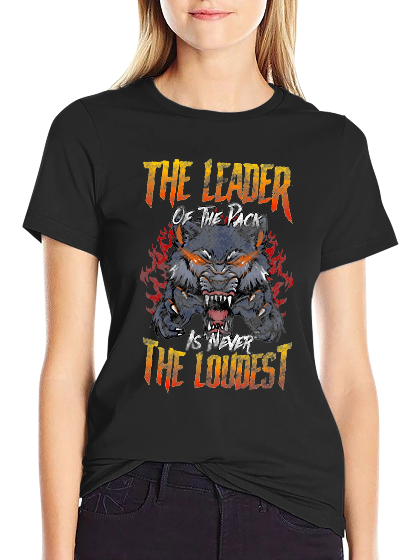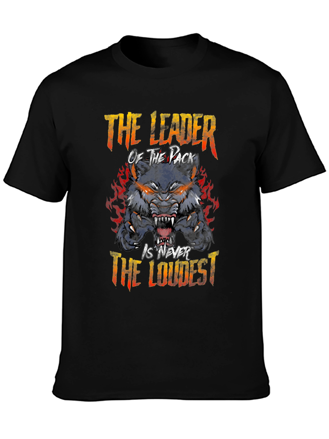 Unleash your inner strength with this striking black t-shirt featuring a powerful "Leader of the Pack" wolf graphic. The design showcases a fierce wolf head with glowing eyes and fiery details, conveying a message of quiet authority. Made from comfortable, breathable fabric, this tee is perfect for casual wear and making a bold statement. Ideal for those who appreciate unique and meaningful designs, it's sure to spark conversations and show off your leadership mindset. Whether you're hitting the streets or relaxing at home, this shirt is a must-have for anyone who embodies the spirit of a true leader.