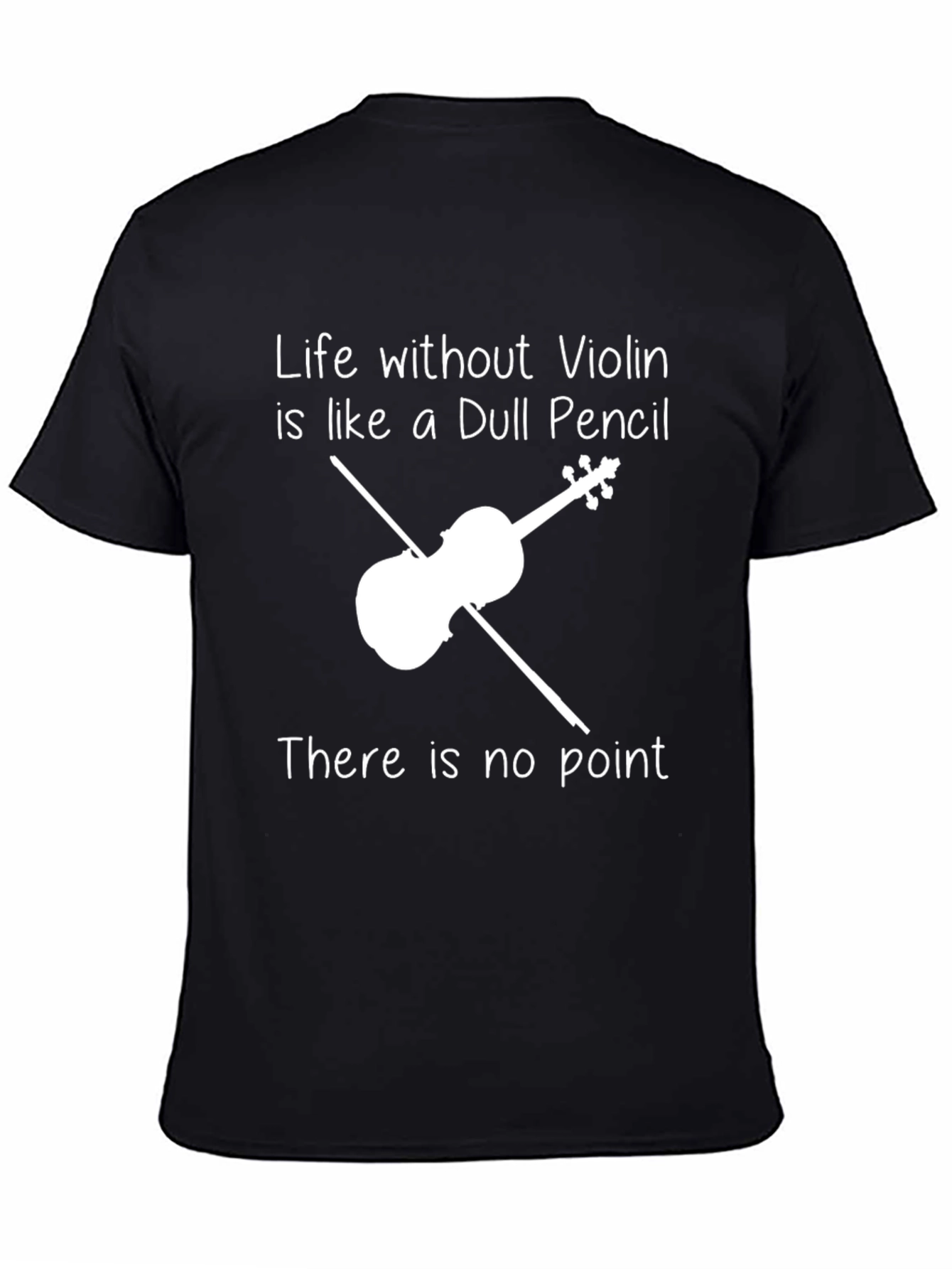 Express your passion for music with this unique "Life Without Violin" t-shirt. This stylish black tee features a creative graphic of a violin intersected by a bow, accompanied by the witty slogan "Life without Violin is like a Dull Pencil. There is no point". Made from comfortable, breathable fabric, this shirt is perfect for musicians, music lovers, and anyone who appreciates a clever design. Ideal for casual wear, concerts, rehearsals, or as a thoughtful gift. Show off your love for the violin with this eye-catching and conversation-starting t-shirt.