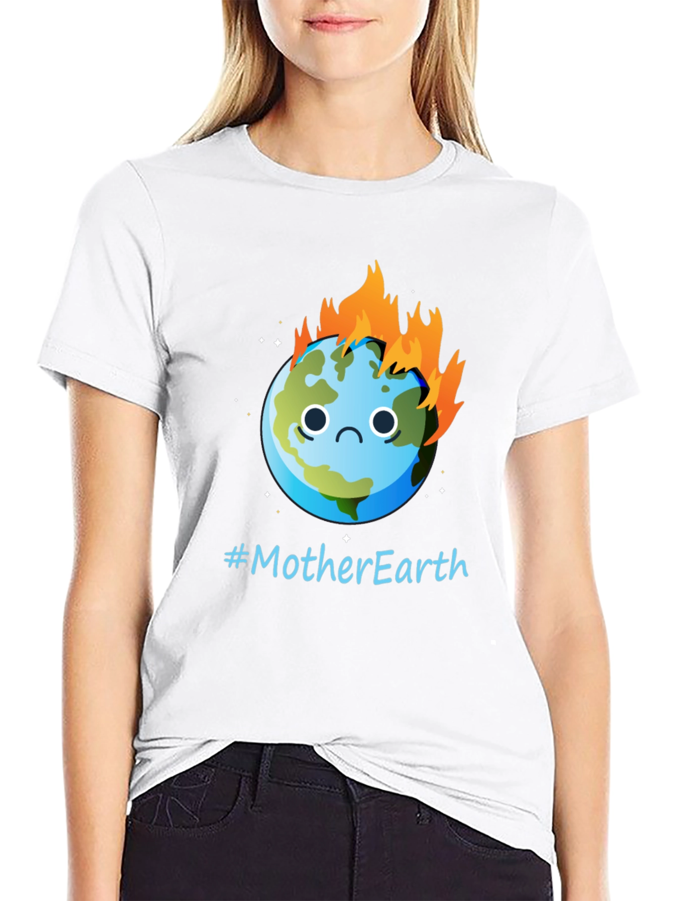 Show your concern for the environment with this unique graphic tee! Featuring a cartoon image of planet Earth engulfed in flames with a sad expression and the hashtag #MotherEarth, this t-shirt is sure to spark conversations. Made from a soft, comfortable fabric, this black t-shirt is perfect for everyday wear. Ideal for environmental activists, nature lovers, or anyone who wants to raise awareness about climate change. This tee is a bold statement piece for a cause!