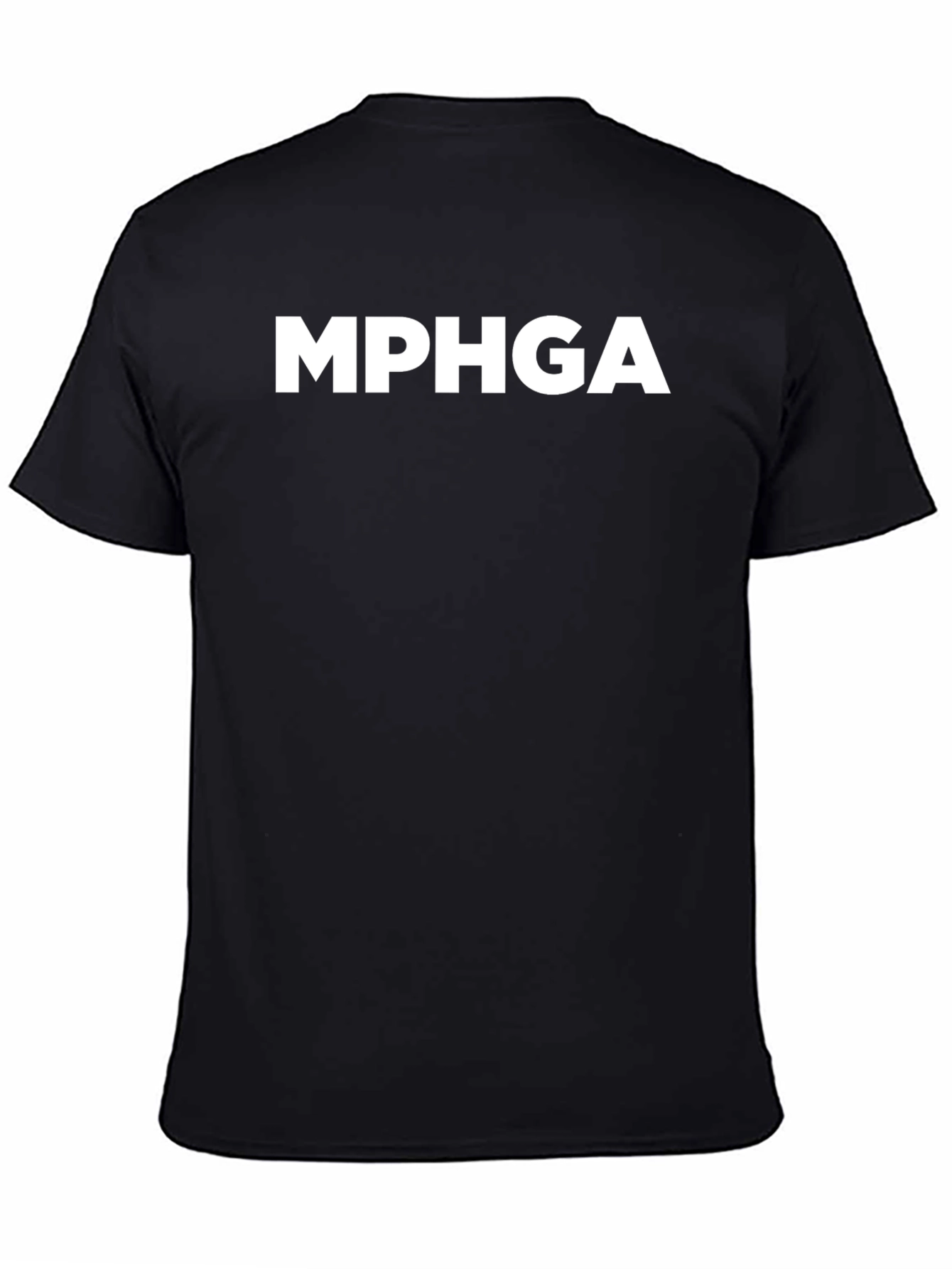 Showcase your style with this classic black t-shirt. This short-sleeved tee features a bold, white "MPGHA" graphic emblazoned across the chest, making a statement without saying a word. The shirt appears to be made from a comfortable cotton blend, perfect for everyday wear. Its versatile design makes it ideal for casual outings, workouts, or lounging at home. Pair it with jeans, shorts, or joggers for a relaxed yet stylish look. A must-have addition to any wardrobe, this t-shirt offers both comfort and effortless cool.
