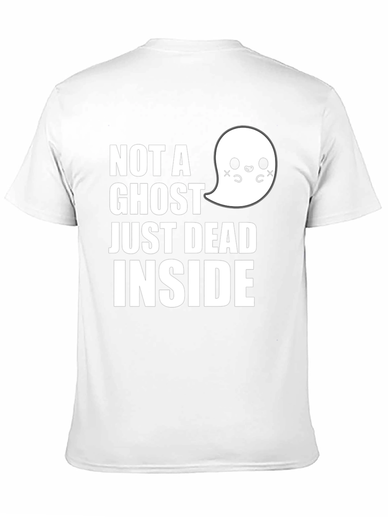 Show your inner feelings with this comfortable black t-shirt. This unique tee features a whimsical ghost graphic next to the phrase "Not A Ghost Just Dead Inside." Made from soft, breathable fabric, this shirt is perfect for everyday wear. Its relaxed fit ensures comfort, while the bold design makes a statement. Great for casual outings, lounging at home, or as a conversation starter. Express your unique sense of humor with this must-have wardrobe addition.