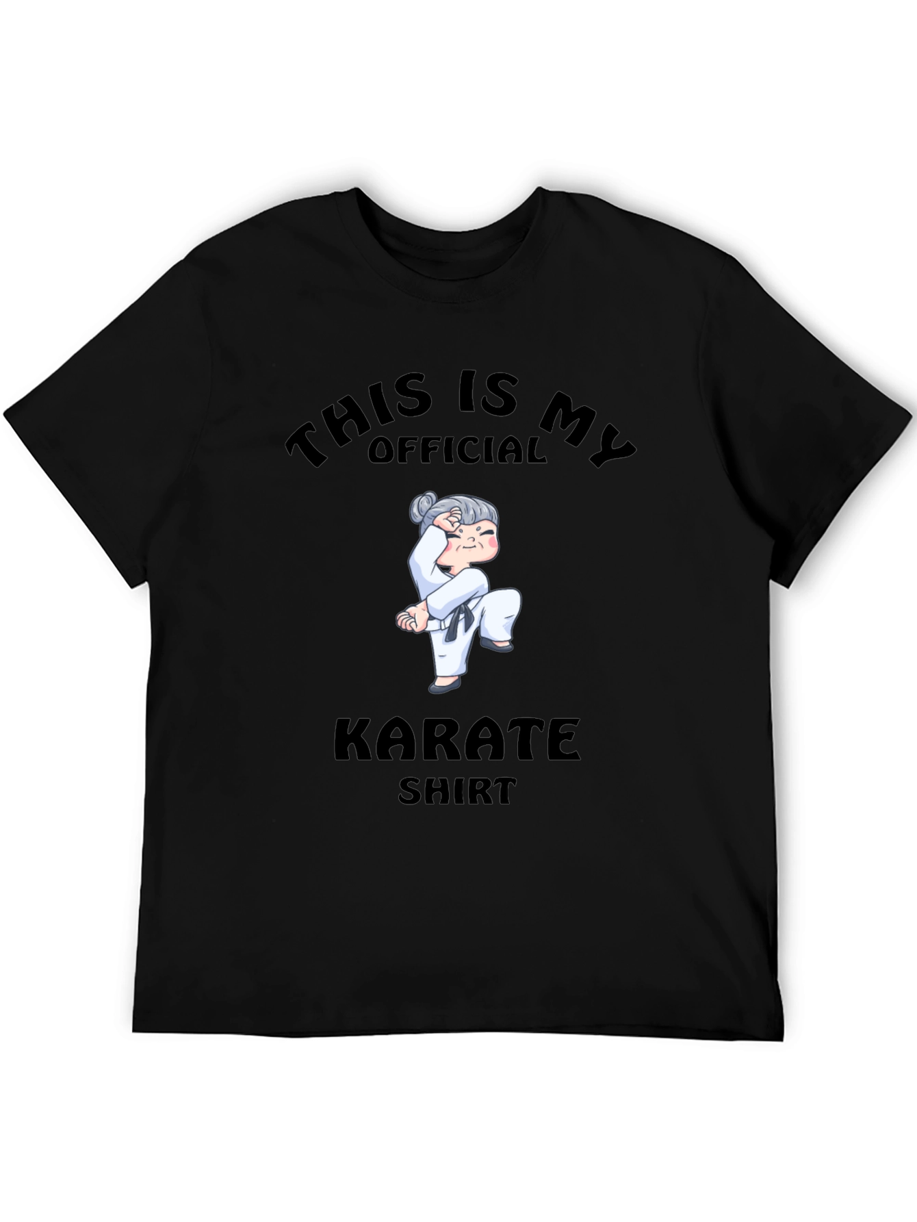 Show off your martial arts skills with this hilarious black tee! Featuring a cute cartoon of an elderly woman in a karate pose, this shirt reads 'This is my official karate shirt.' Perfect for karate students, instructors, and martial arts enthusiasts with a sense of humor. Made from comfortable material, this tee is ideal for casual wear, karate practice, or as a fun gift. Express your love for karate with this unique and eye-catching shirt! Get yours today and show off your karate spirit!