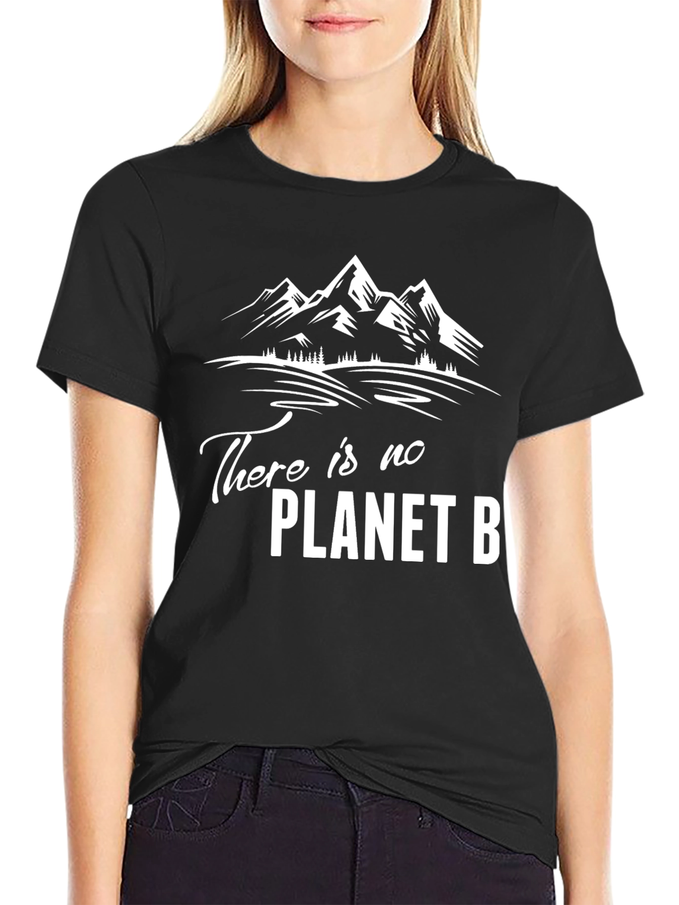Show your love for Earth with this stylish black t-shirt! Featuring a bold white graphic of majestic mountains and the powerful slogan "There is no Planet B," this tee is a statement piece. Made from what appears to be a soft, comfortable fabric, this shirt is perfect for everyday wear and making a statement. The classic crew neck and short sleeves offer a timeless fit. Whether you're hiking in the mountains or simply running errands, this t-shirt is a reminder to protect our planet. A great addition to any eco-conscious wardrobe!