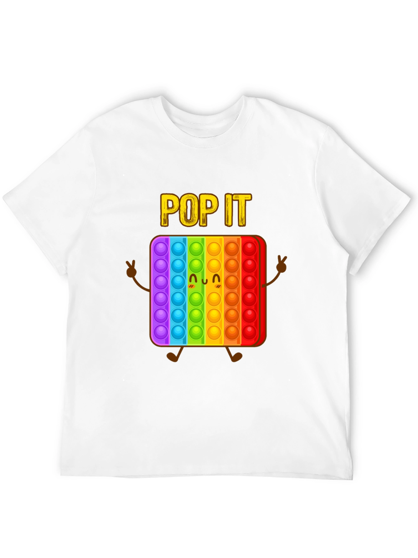 Show off your love for the popular Pop It fidget toy with this fun and stylish black t-shirt. The shirt features a colorful, cartoon-style graphic of a Pop It with a playful design. Made from a comfortable material, this tee is perfect for everyday wear. This unique t-shirt is sure to turn heads and makes a great gift for Pop It enthusiasts of all ages. Its bold colors and eye-catching design ensure you'll stand out from the crowd. Perfect for casual outings, school, or lounging at home, this t-shirt is a must-have addition to any wardrobe. Get yours today and let everyone know you're a Pop It fan!