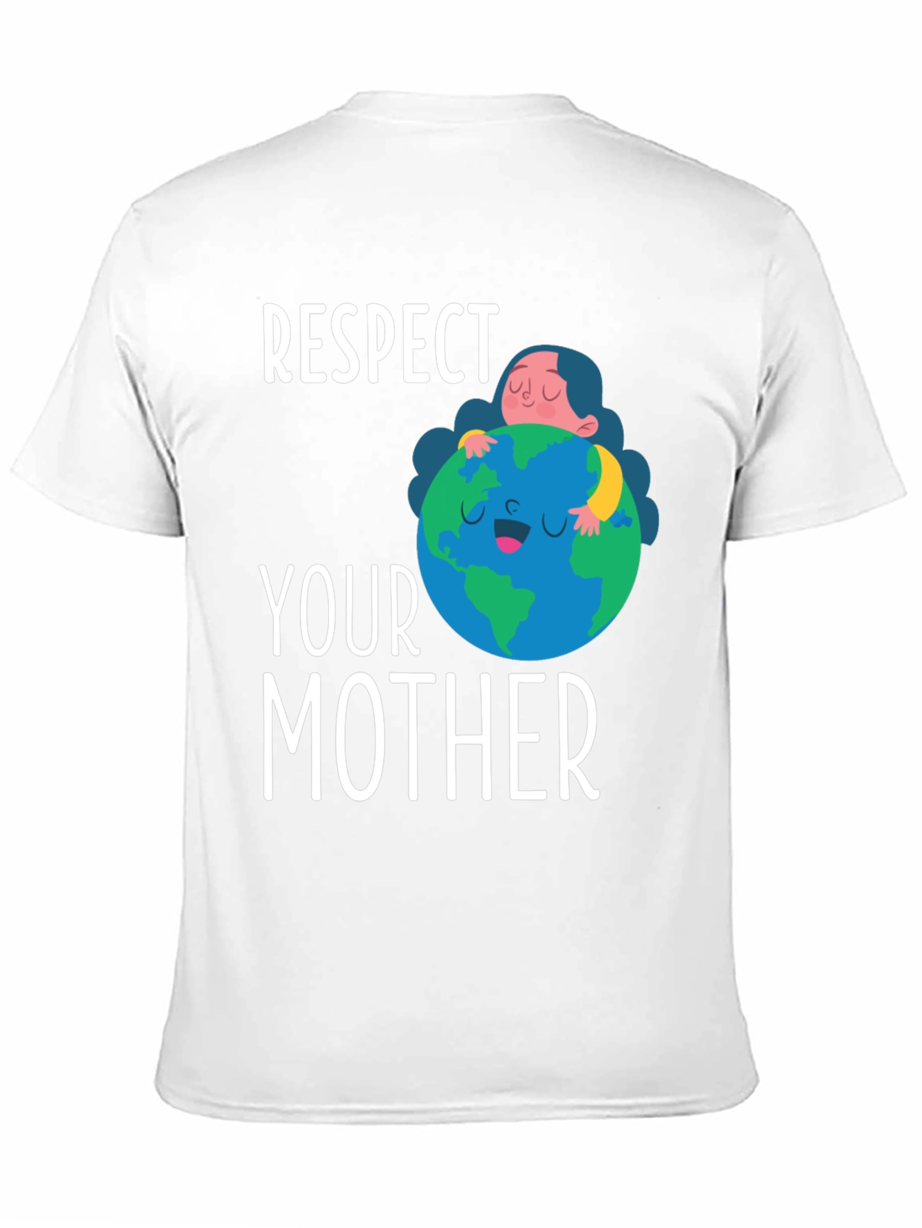 Show your love for planet Earth with this Respect Your Mother T-shirt. This black t-shirt features white text along with an adorable graphic of a child hugging planet Earth. Perfect for everyday wear or as a gift for environmental advocates. Its classic fit ensures comfort and style. Wear it with pride and inspire others to care for our home.