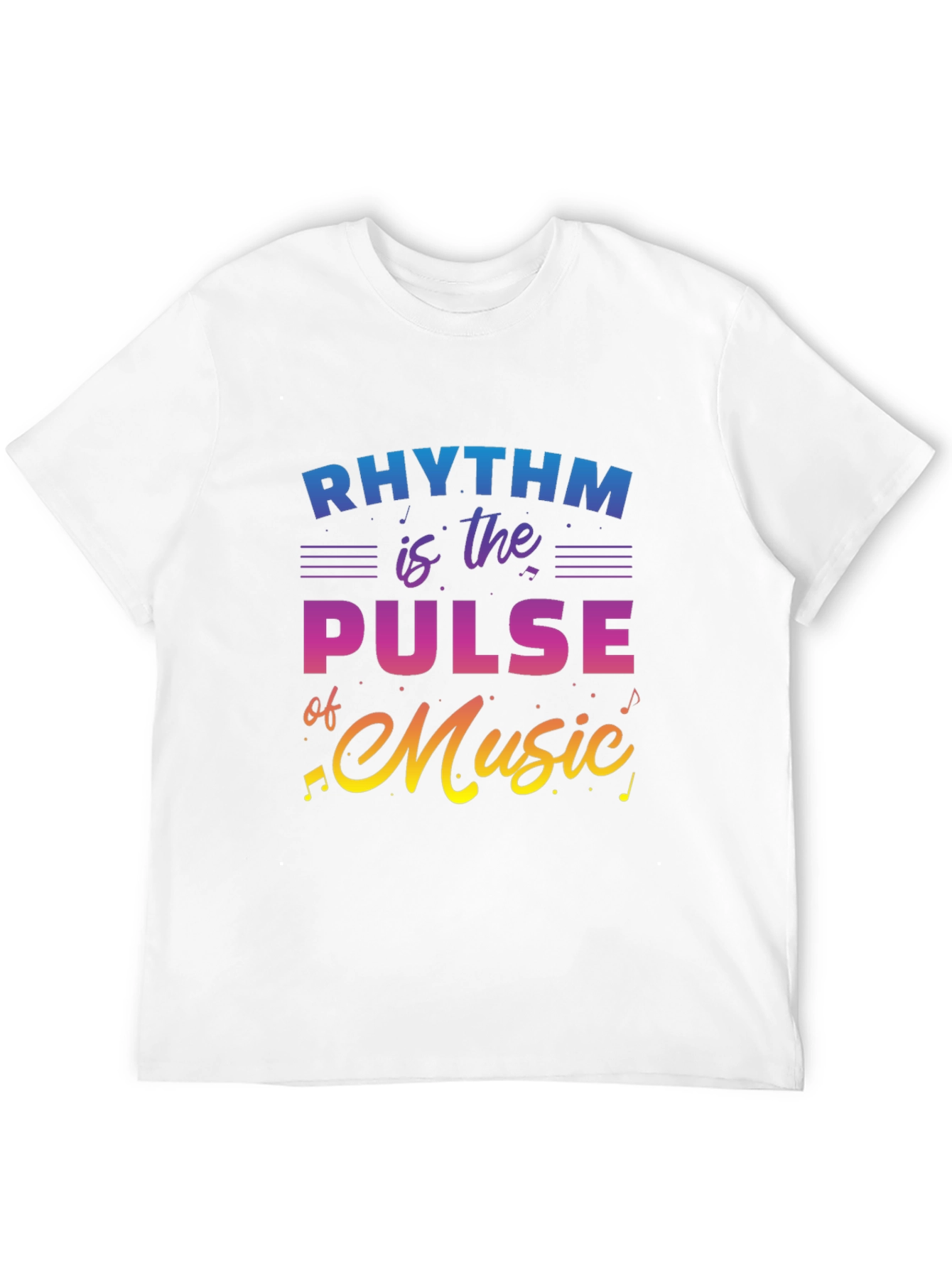 Express your love for music with this stylish black graphic tee. The shirt features a vibrant, eye-catching design with the text "Rhythm is the Pulse of Music" in a gradient of blue, purple, and yellow, accompanied by musical notes. Made from comfortable, breathable fabric, this t-shirt is perfect for casual wear, concerts, music festivals, or simply showing off your passion for music. It’s a great gift for musicians, music lovers, or anyone who appreciates a cool and unique design. Stand out from the crowd and let your love for rhythm shine!