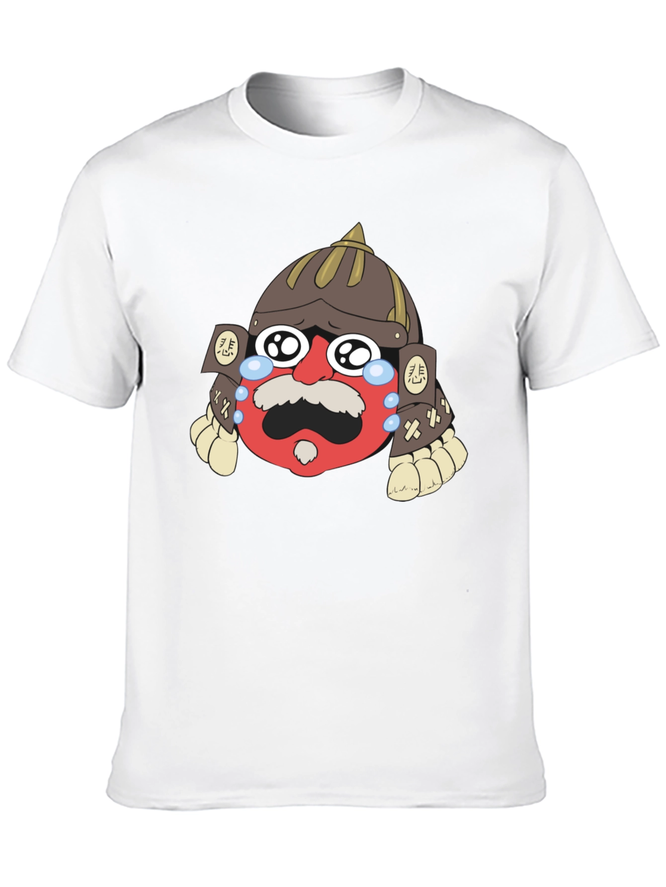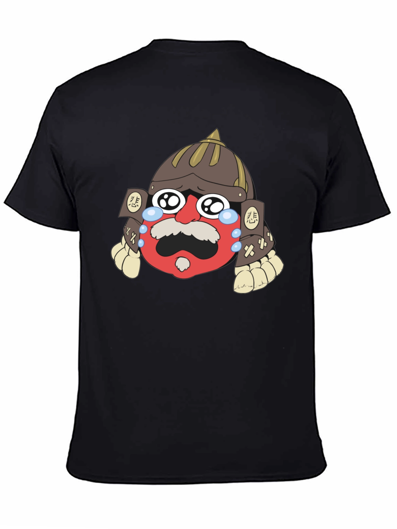 This eye-catching black t-shirt features a unique graphic design. The design showcases a red-faced samurai emoji shedding tears, complete with a traditional helmet and mustache. This bold graphic adds a playful and artistic element to your everyday wardrobe. Made from comfortable, breathable fabric, this tee is perfect for casual outings, lounging at home, or making a statement wherever you go. Pair it with jeans, shorts, or your favorite bottoms for a fun and stylish look. The graphic is sure to turn heads and spark conversation. Express your unique personality with this must-have t-shirt!
