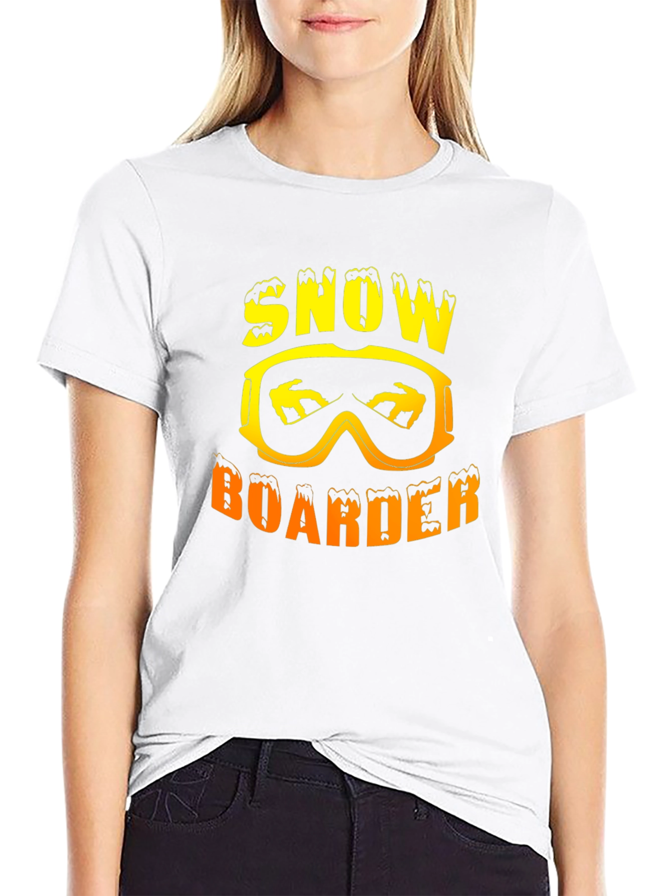 Show off your love for snowboarding with this stylish graphic tee. The black t-shirt features a vibrant yellow and orange design that reads "SNOW BOARDER" with a cool goggle graphic in the center. The bold lettering and eye-catching imagery make a statement on and off the slopes. Made from a comfortable and durable fabric, this tee is perfect for everyday wear or layering under your snow gear. Whether you're hitting the mountains or just chilling with friends, this tee is sure to turn heads.