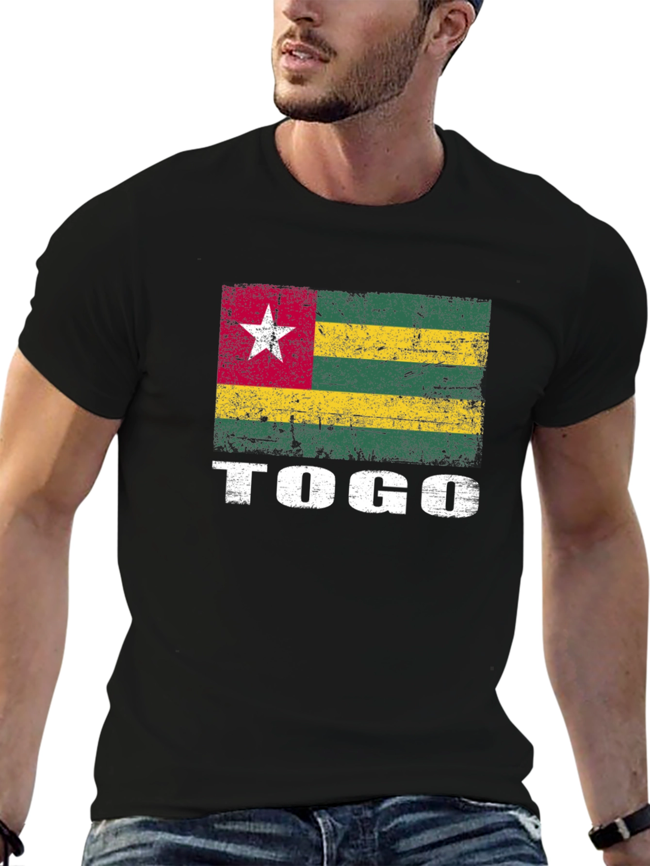 Show your Togolese pride with this eye-catching graphic t-shirt. The design features a distressed Togo flag, giving it a vintage and stylish look. The word "TOGO" is boldly printed below the flag. Made from a comfortable, soft fabric, this tee is perfect for everyday wear, sporting events, or cultural celebrations. The classic black color makes it easy to pair with jeans, shorts, or any casual outfit. Whether you're a Togolese native, a traveler, or simply an admirer of the country, this t-shirt is a great way to express your connection. A must-have addition to any wardrobe! Get yours today and represent Togo with pride!