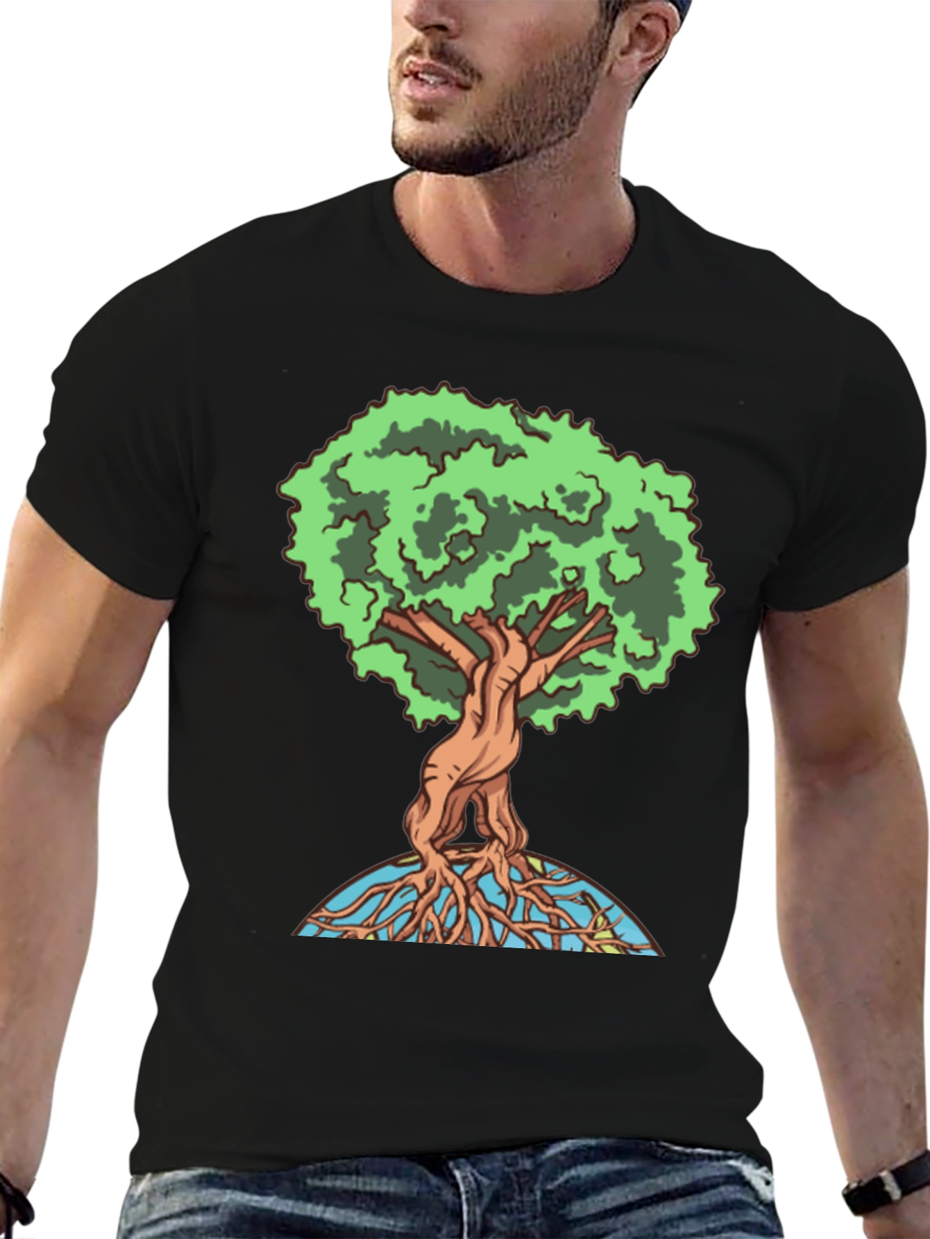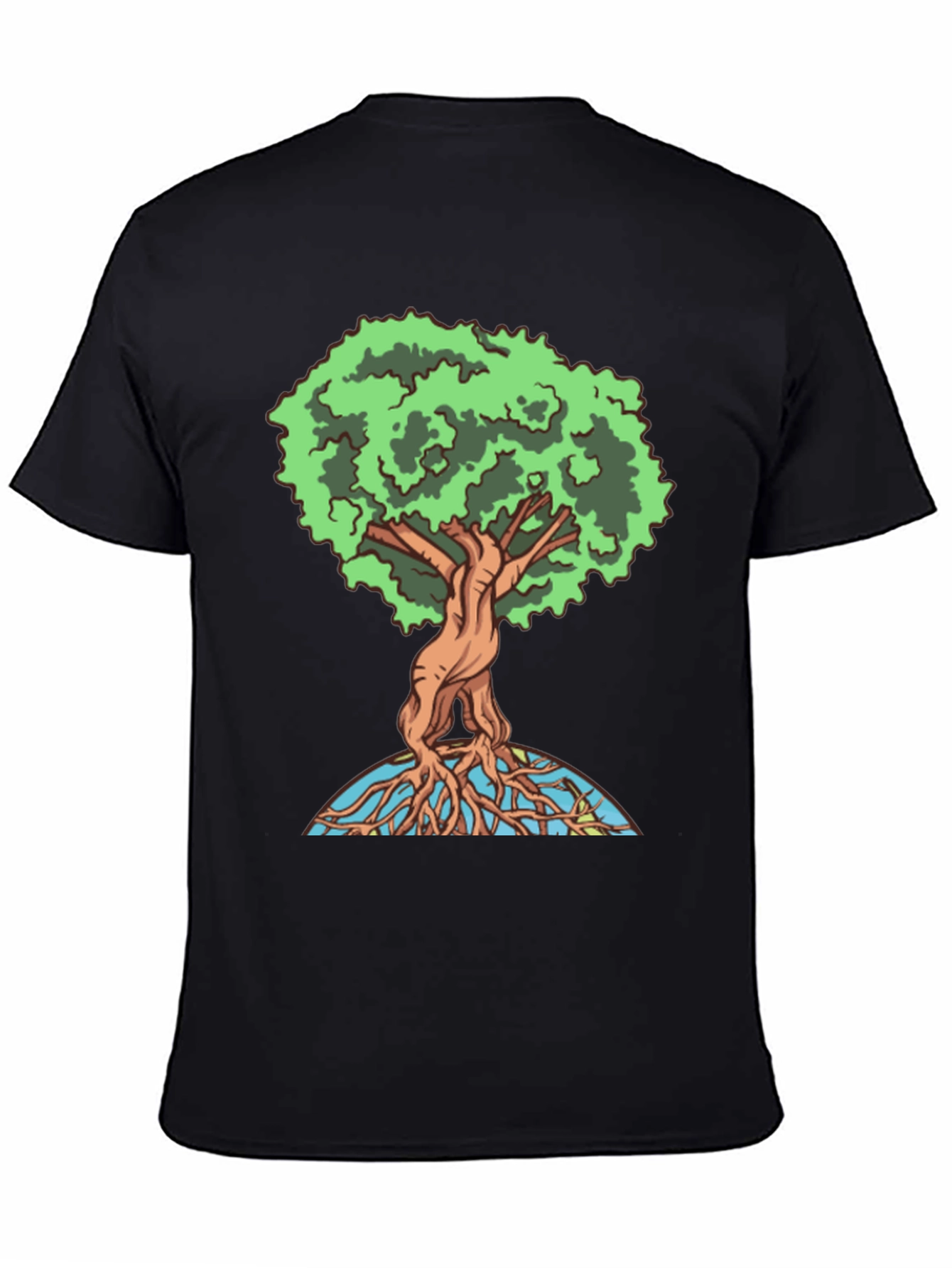 Showcase your love for nature with this unique graphic tee! The shirt features a vibrant and detailed "Tree of Life" design, complete with lush green foliage, intricately woven branches, and exposed roots. Printed on a comfortable, black cotton blend fabric, this tee offers both style and comfort. The eye-catching graphic makes a statement, perfect for casual outings, nature walks, or expressing your eco-conscious values. Add a touch of earthy charm to your wardrobe with this must-have tee!