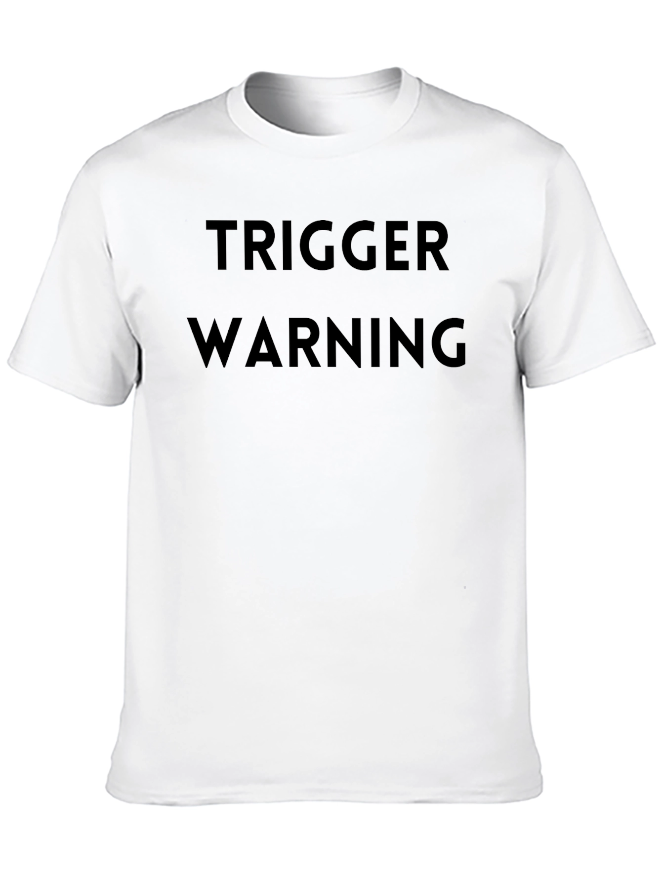 Declare your unique style with this bold black tee! The "Trigger Warning" graphic makes a statement while the comfortable cotton fabric keeps you feeling great all day. Its classic fit and versatile design make it perfect for casual outings, expressing your personality, or making a statement. Durable and eye-catching, this tee will be a staple in your wardrobe. Pair it with jeans, shorts, or joggers for an effortlessly cool look. A must-have for anyone looking to add a touch of edgy humor to their everyday style.
