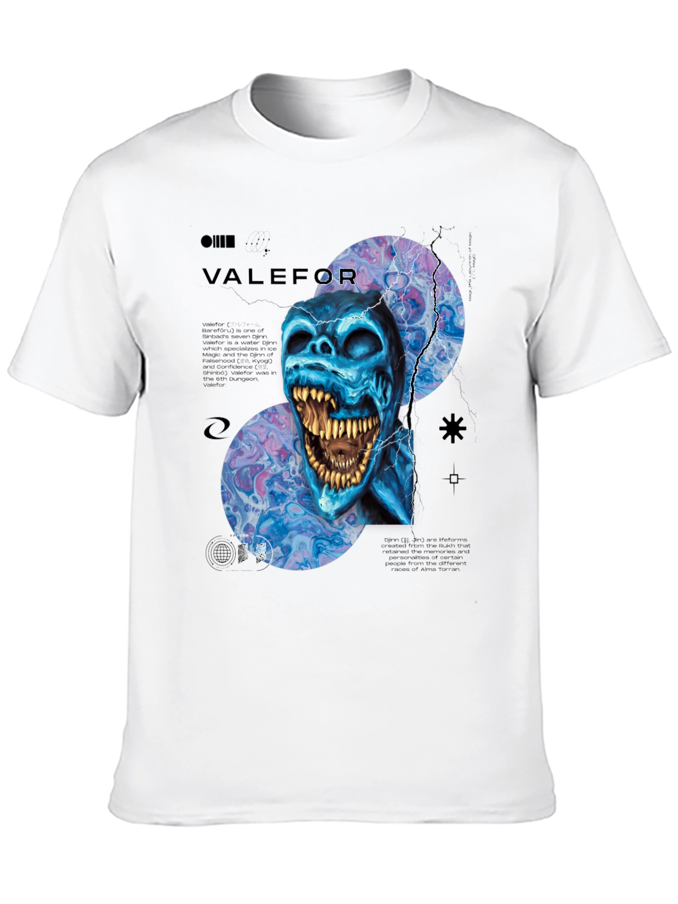 Show off your unique style with this eye-catching VALEFOR graphic print t-shirt. Featuring a bold, blue monster face design set against a textured background, this tee is sure to turn heads. The classic crew neck and short sleeve design make it a versatile addition to your wardrobe. Made from comfortable, breathable fabric, this t-shirt is perfect for everyday wear. Pair it with jeans or shorts for a casual look, or dress it up with a jacket for a night out. Make a statement with this must-have piece!