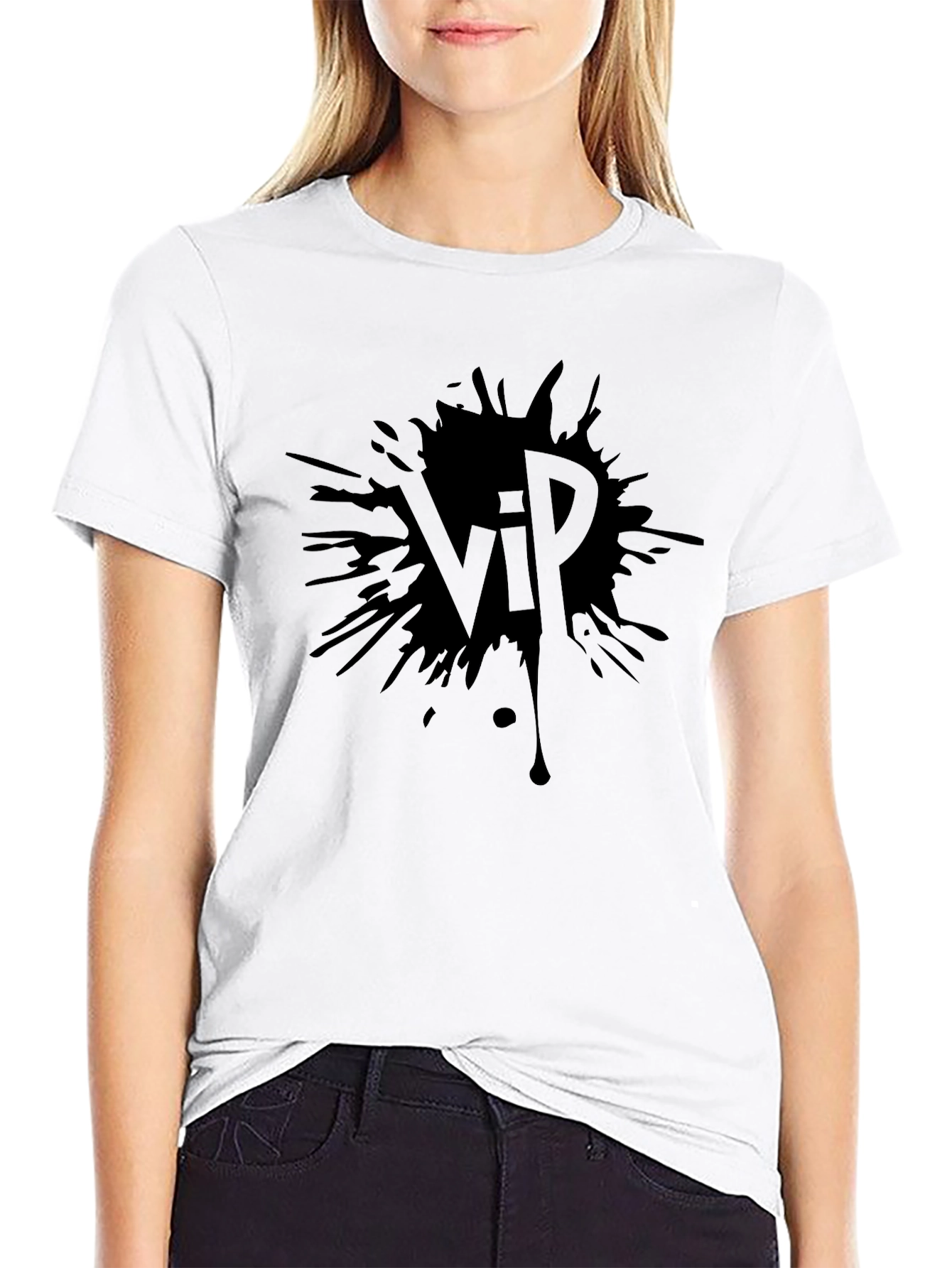 Elevate your style with this unique black T-shirt featuring a bold 'VIP' design. The splatter effect adds an edgy, artistic touch, making it a standout piece in any wardrobe. Crafted from a soft, breathable fabric, this tee offers superior comfort and a relaxed fit, perfect for everyday wear. Ideal for casual outings, concerts, or making a statement at social gatherings, this VIP T-shirt exudes confidence and exclusivity. Pair it with jeans or shorts for a cool, effortless look. Make a statement without saying a word!