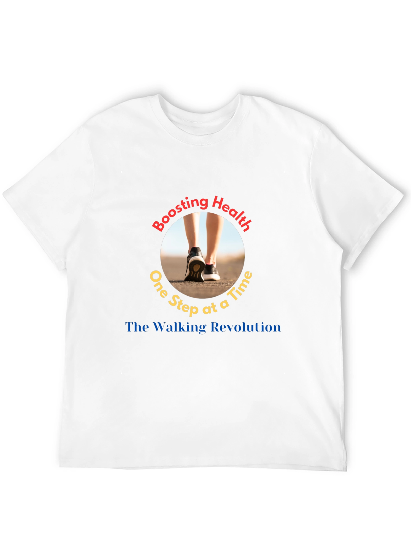 Step into style with this comfortable and eye-catching t-shirt. Featuring a unique graphic design with the message "Boosting Health One Step at a Time, The Walking Revolution", this tee is perfect for anyone who loves to walk or promote an active lifestyle. The design incorporates a visual of feet walking on a road. Made from soft, breathable fabric, it’s ideal for everyday wear or workouts. Make a statement while enjoying the comfort of this stylish and motivational tee.